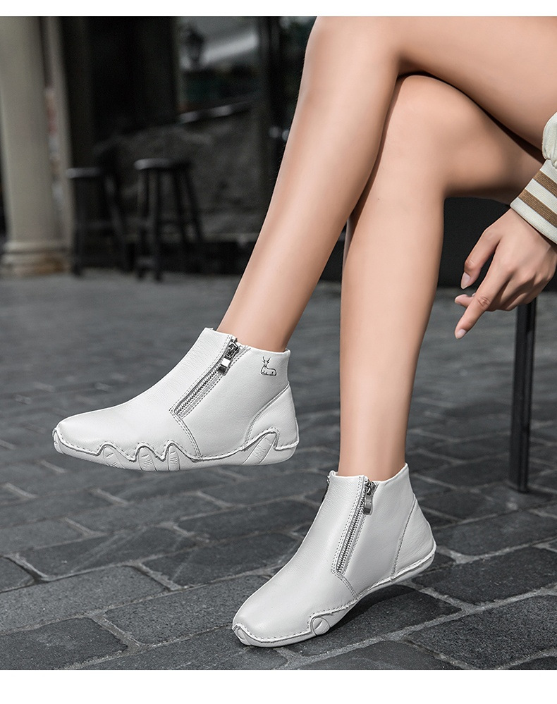 크로스 보더 폭발 레트로 마틴 부츠 여성의 정품 가죽 플러스 사이즈 면 신발 독립 역 높은 내마모성 야외 캐주얼 신발