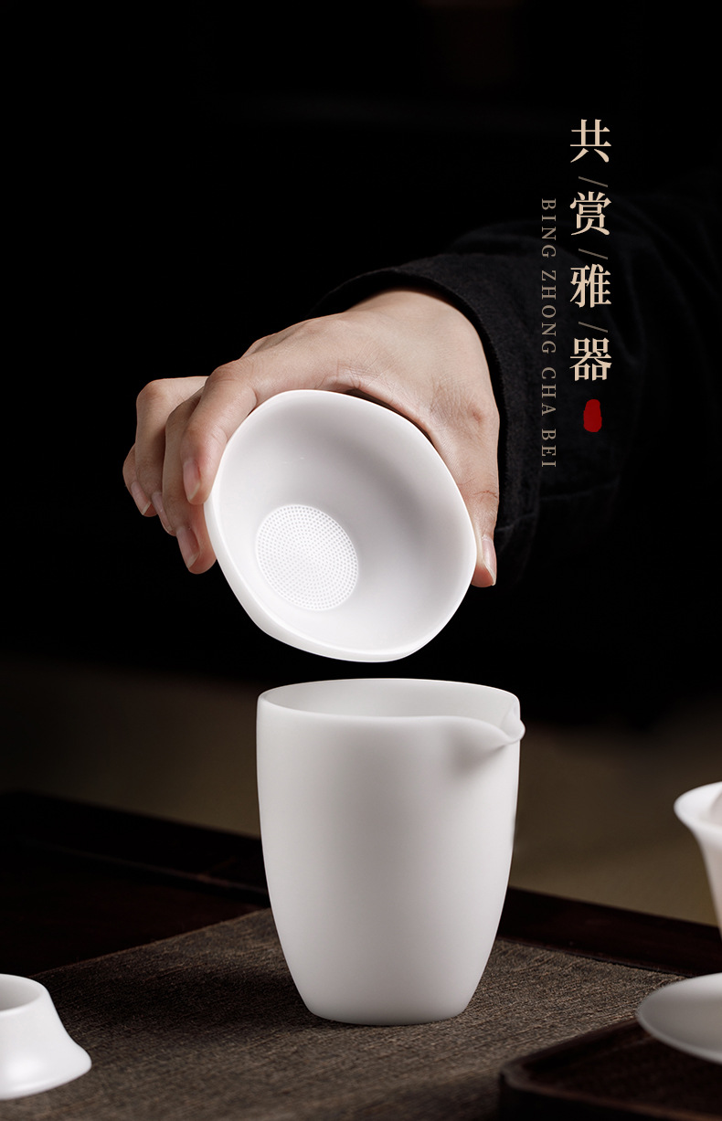 얼음 옥 도자기 차 누출 차 필터 흰색 도자기 차 필터 그물 차 브레이크 페어 컵 통합 차 여과기 차 세트 액세서리