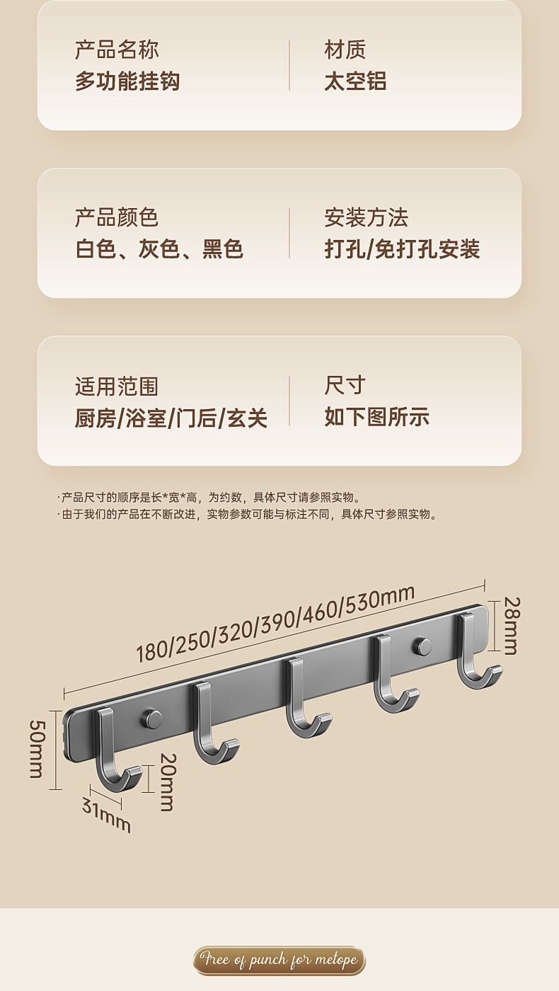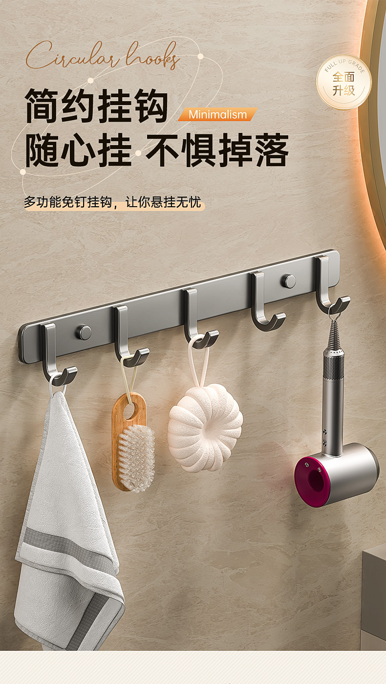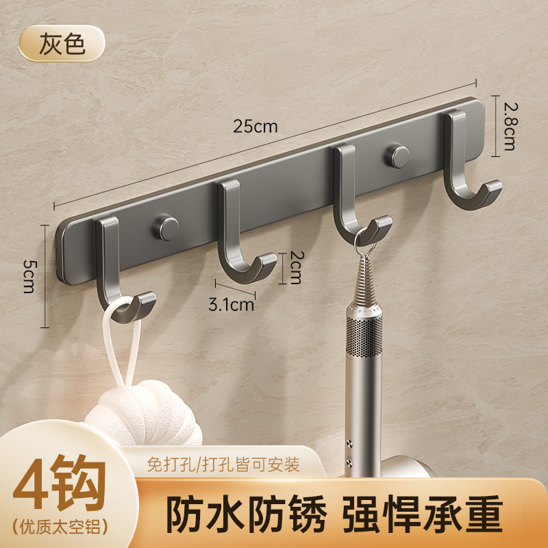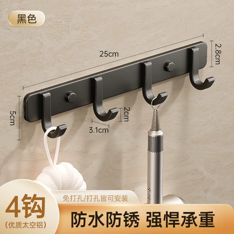 펀치없는 공간 알루미늄 코트 후크 욕실 코트 후크 도어 후면 후크 걸이 주방 강한 접착 후크스토어 가기