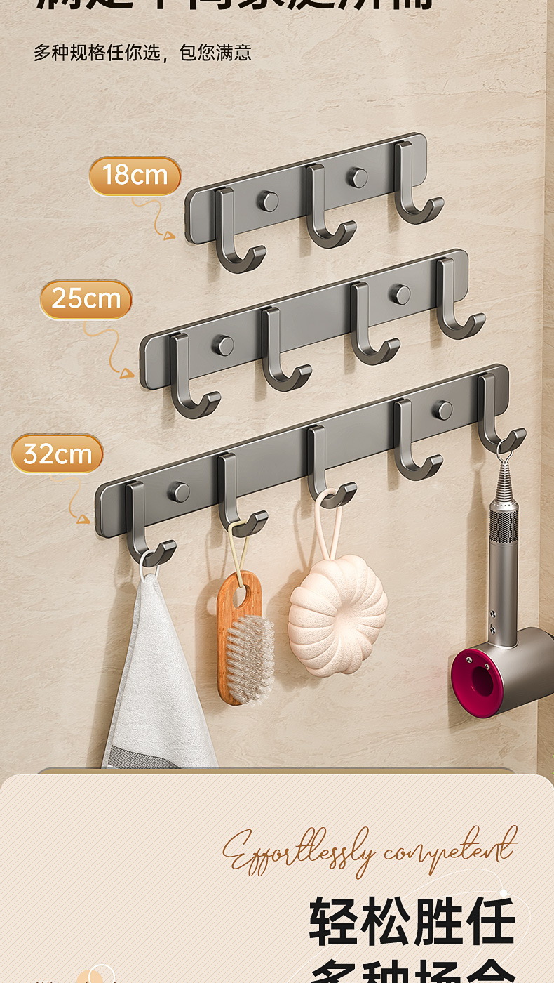 펀치없는 공간 알루미늄 코트 후크 욕실 코트 후크 도어 후면 후크 걸이 주방 강한 접착 후크