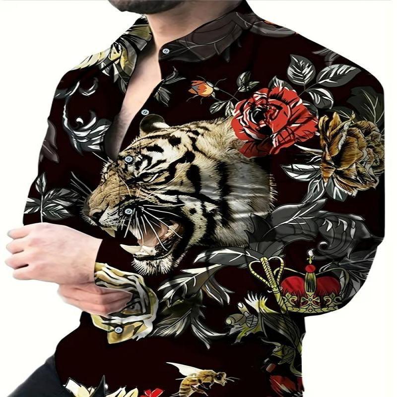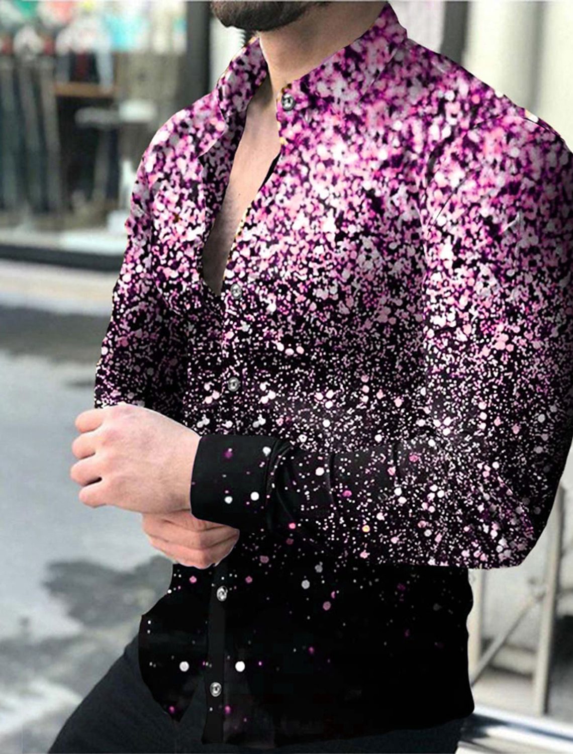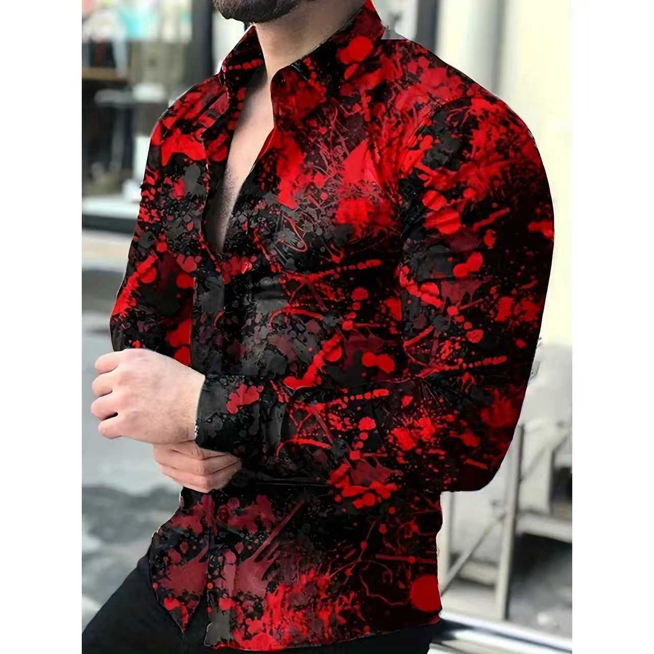 남자의 셔츠 플래시 프린트 긴 소매 캐주얼 탑 블루 퍼플 핑크 골드 레드 야외 스트리트 탑스토어 가기