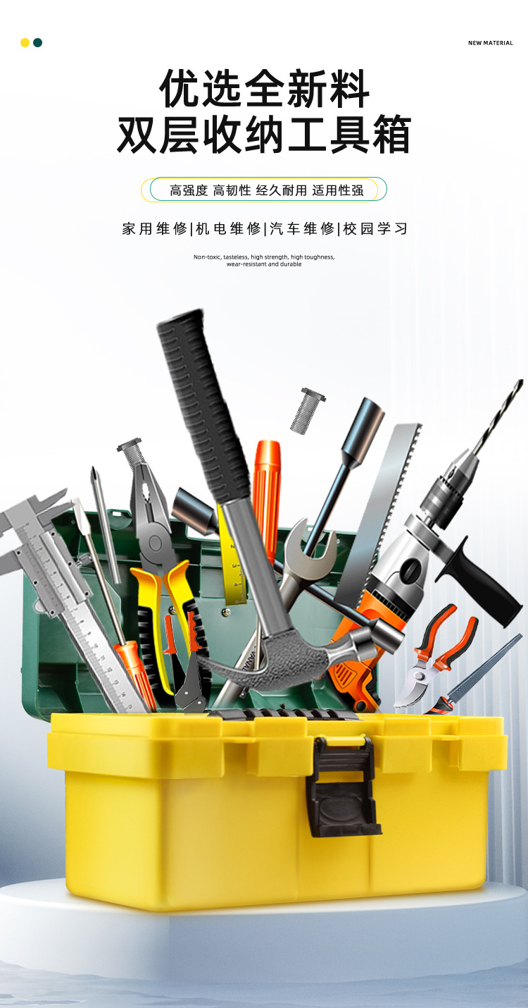 YICEN Yichen 휴대용 대용량 더블 레이어 다기능 도구 상자 보관함 하드웨어 도구 보관함