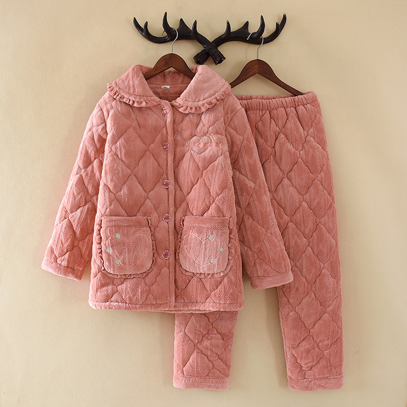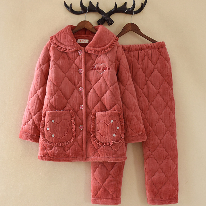 370kg 의 크기를 늘리기 위해 비료를 첨가하십시오 3 층 패딩 코튼 파자마 여성의 겨울 패딩 기모 따뜻한 가정 의류 세트스토어 가기