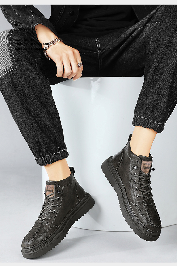 유럽 라이트 럭셔리 하이탑 남성 신발 2023 새로운 가을과 겨울 기모 따뜻한 마틴 부츠 남성 캐주얼 스포츠 트렌디 신발