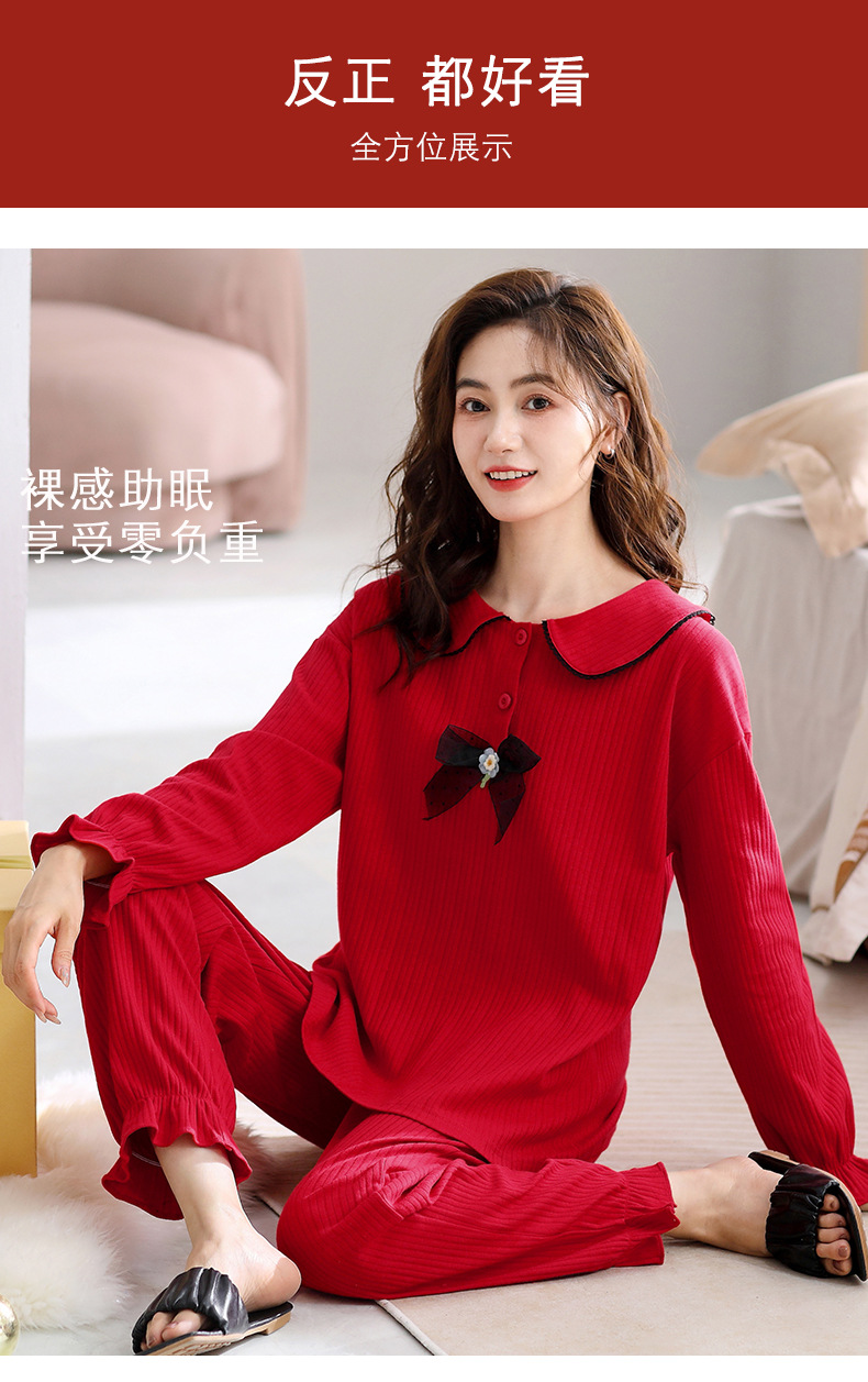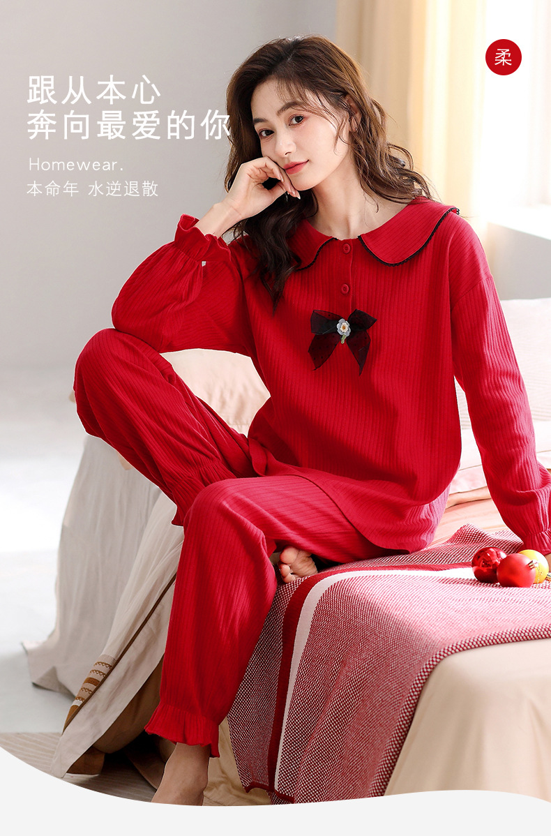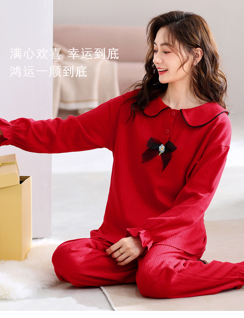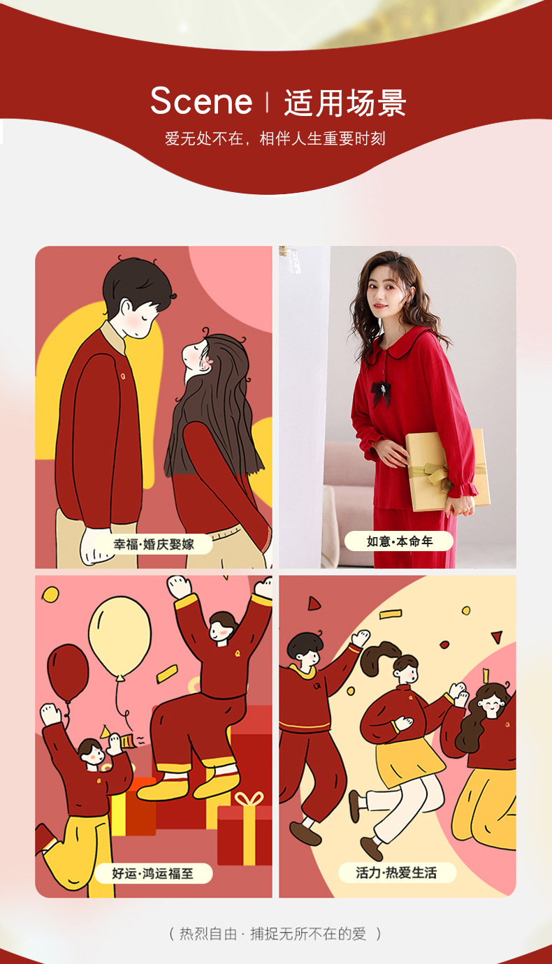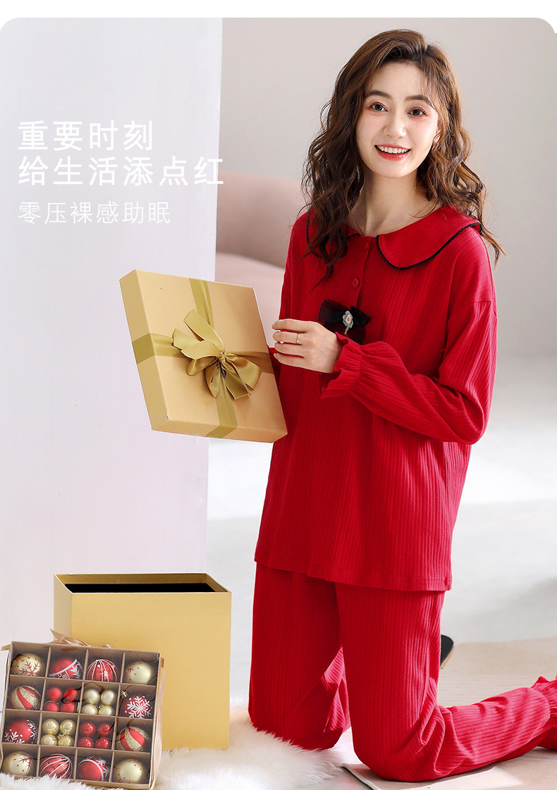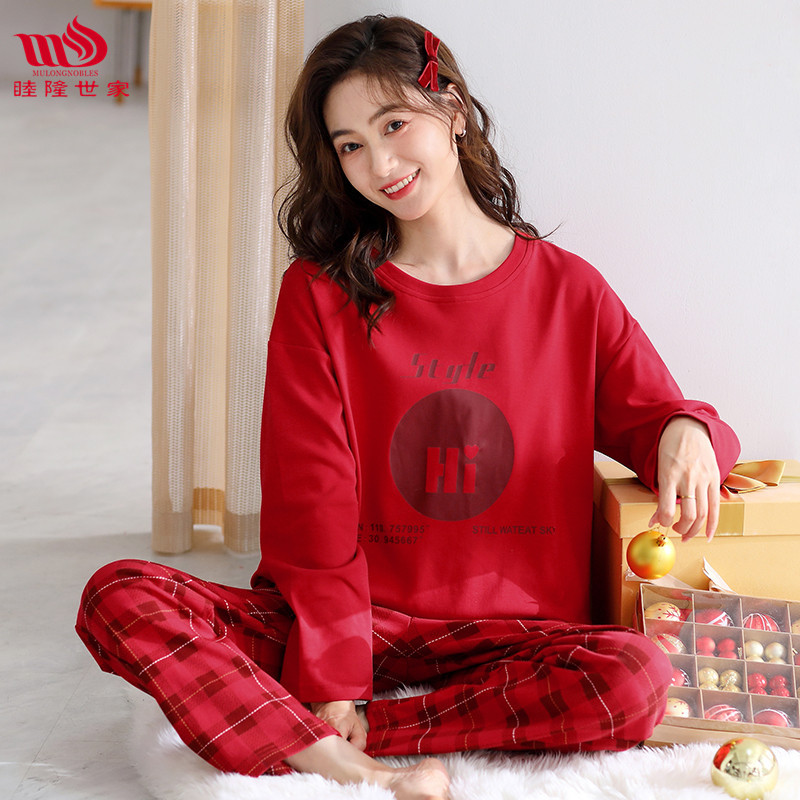 Mulong 귀족 가족 빨간 잠옷 여자의 생일 년 봄과 가을 면 긴 소매 면 가을과 겨울 얇은 플러스 사이즈 가정 옷스토어 가기