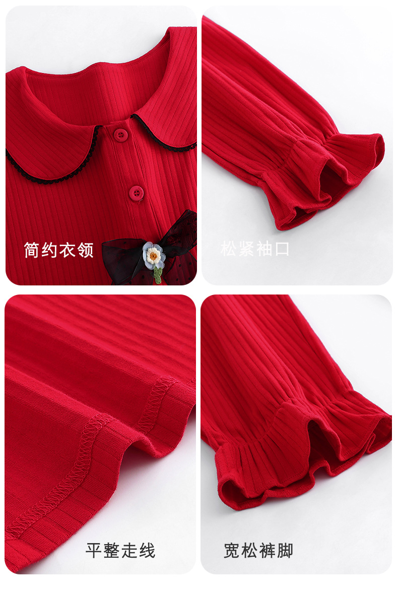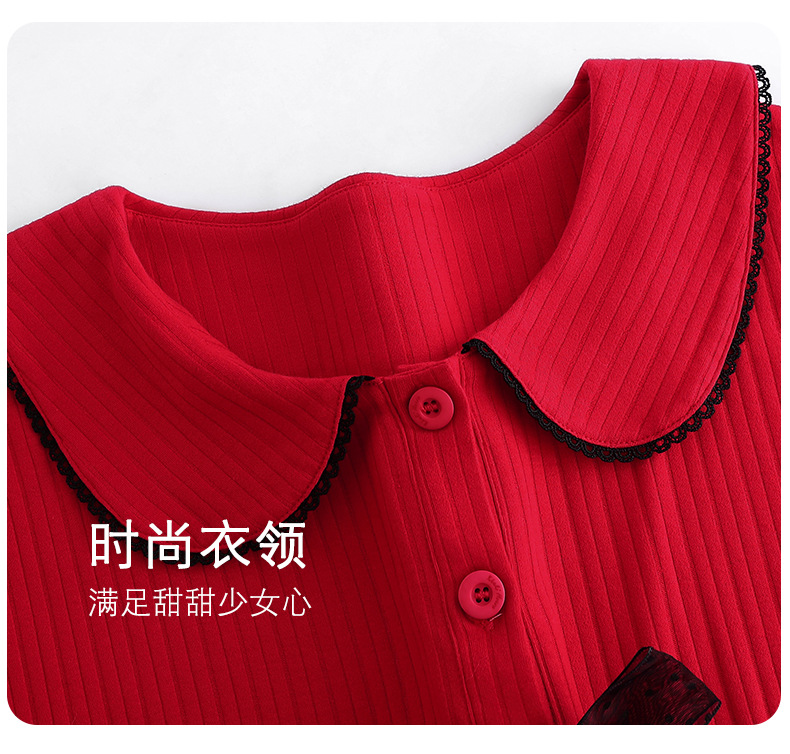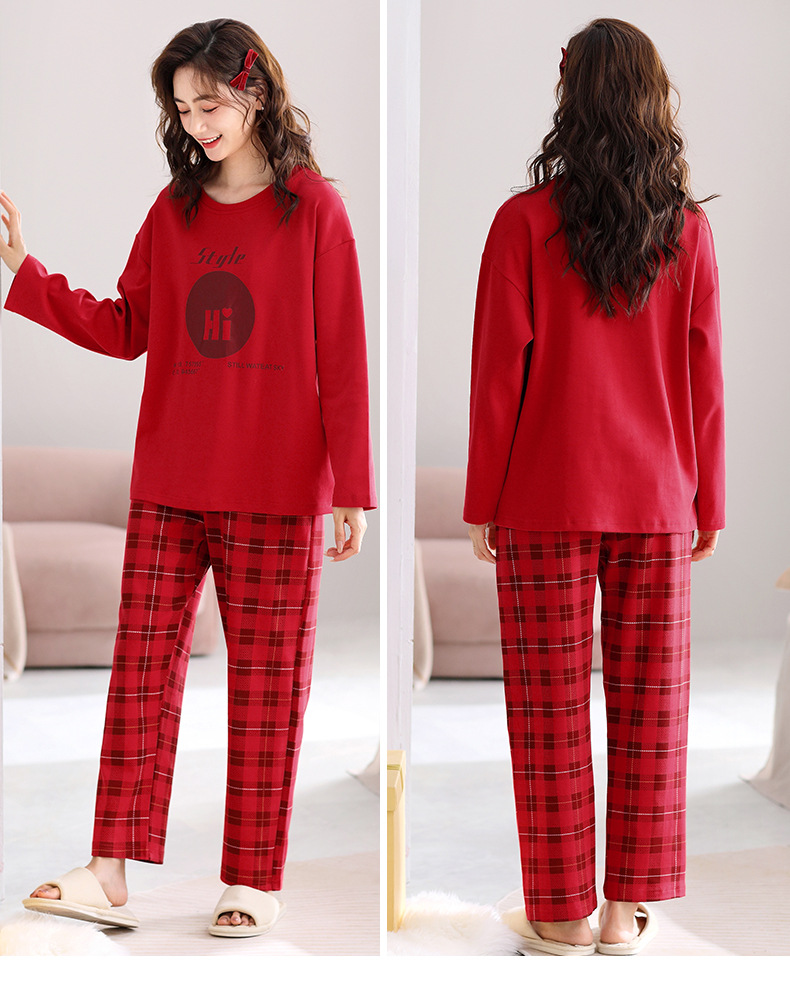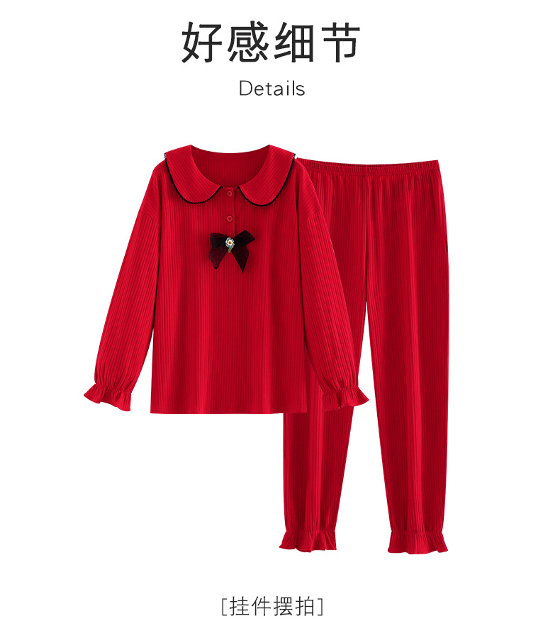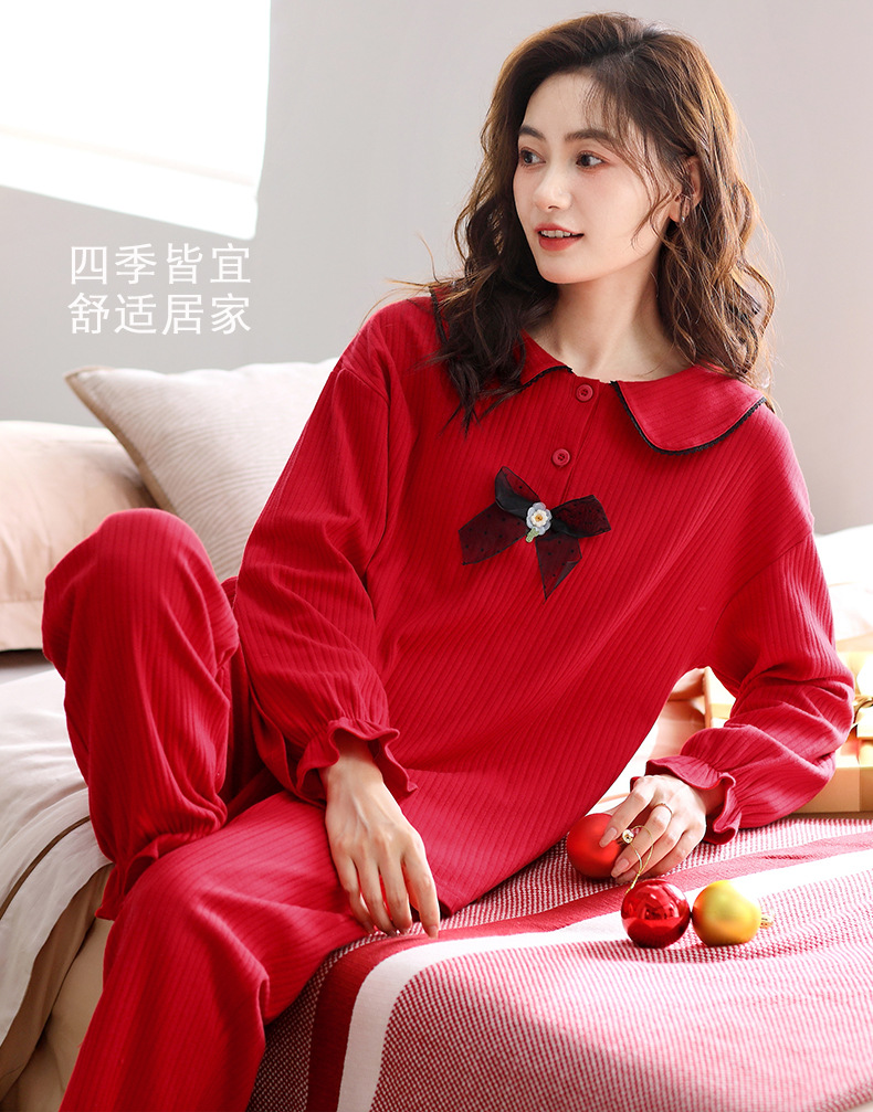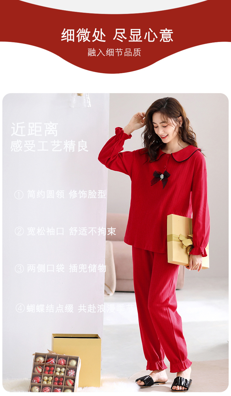 Mulong 귀족 가족 빨간 잠옷 여자의 생일 년 봄과 가을 면 긴 소매 면 가을과 겨울 얇은 플러스 사이즈 가정 옷스토어 가기