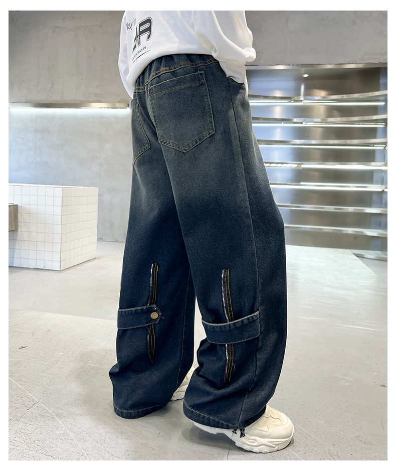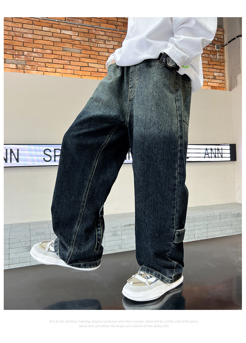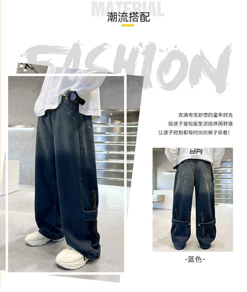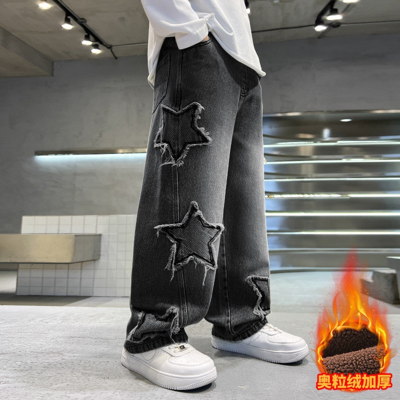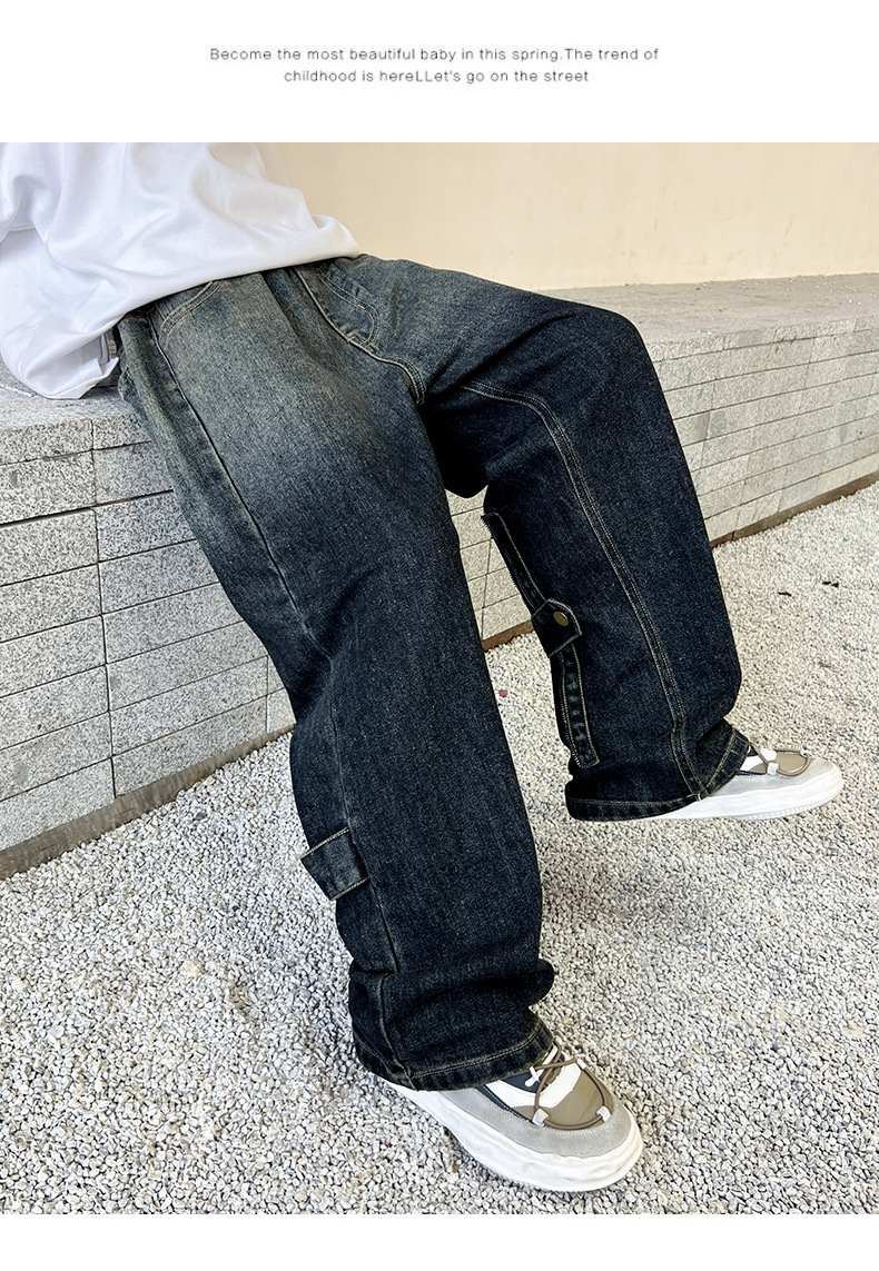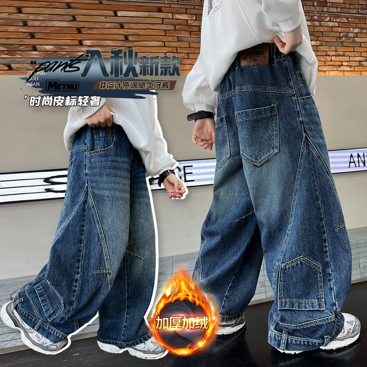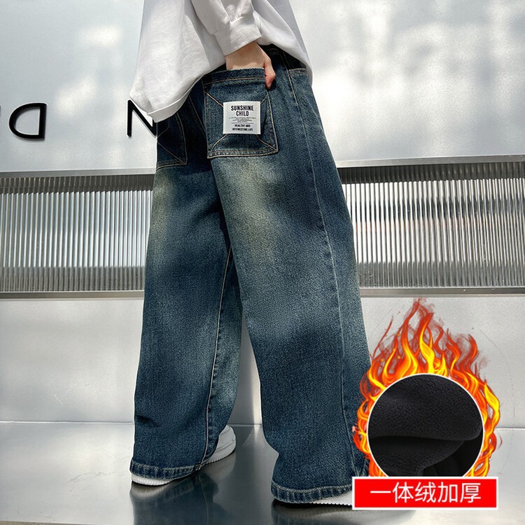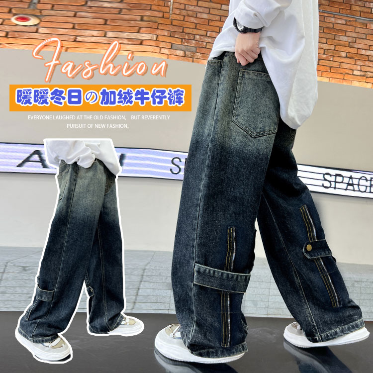 【수출용】남아 봄가을 청바지 아동복 가을겨울 와이드 팬츠 남아용 기모 스트레이트 팬츠스토어 가기
