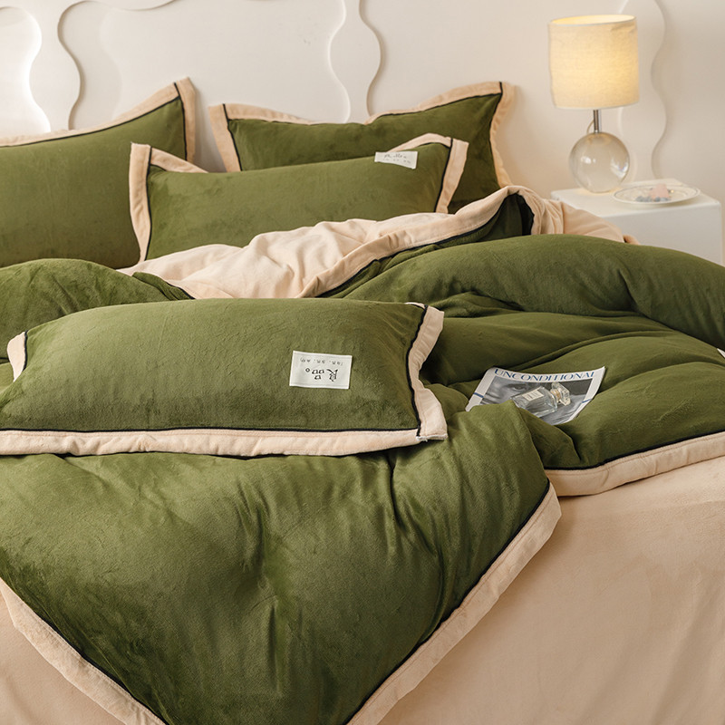 • 두꺼운 우유 벨벳 이불 커버-올리브 그린 + 라이스 골드