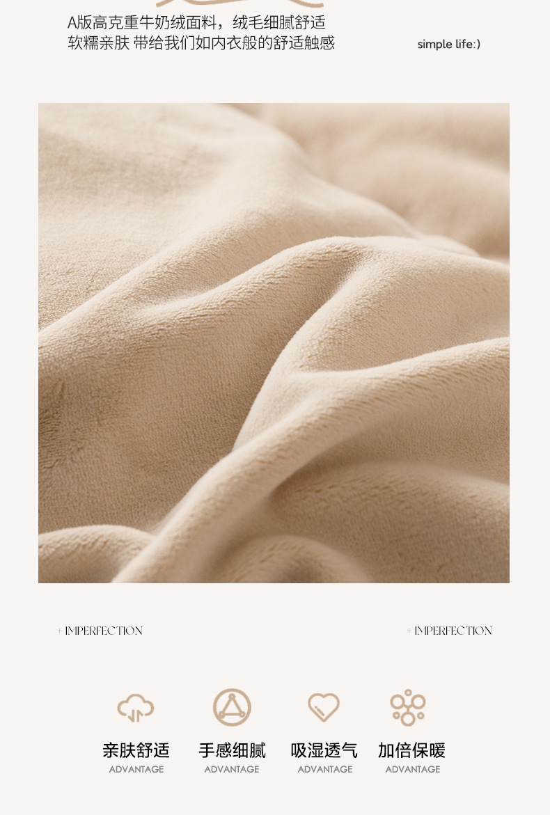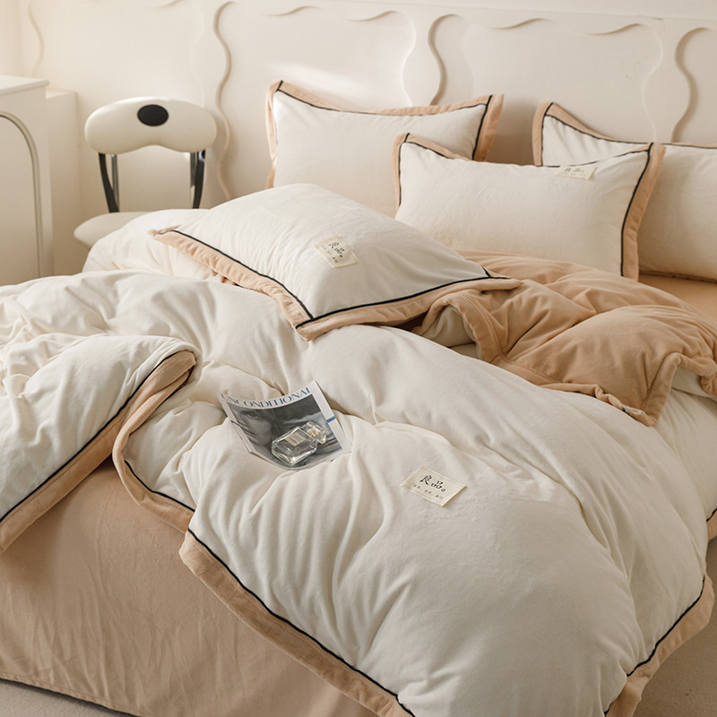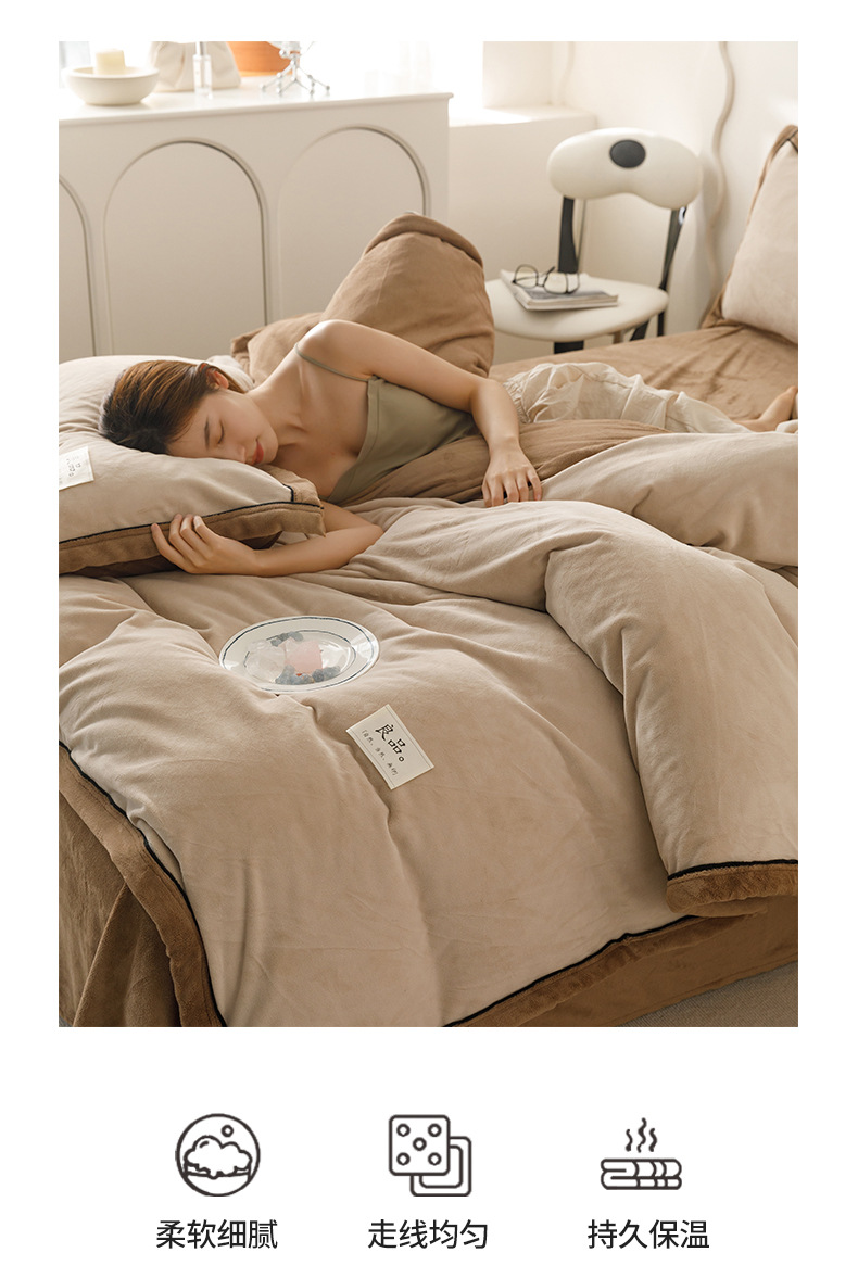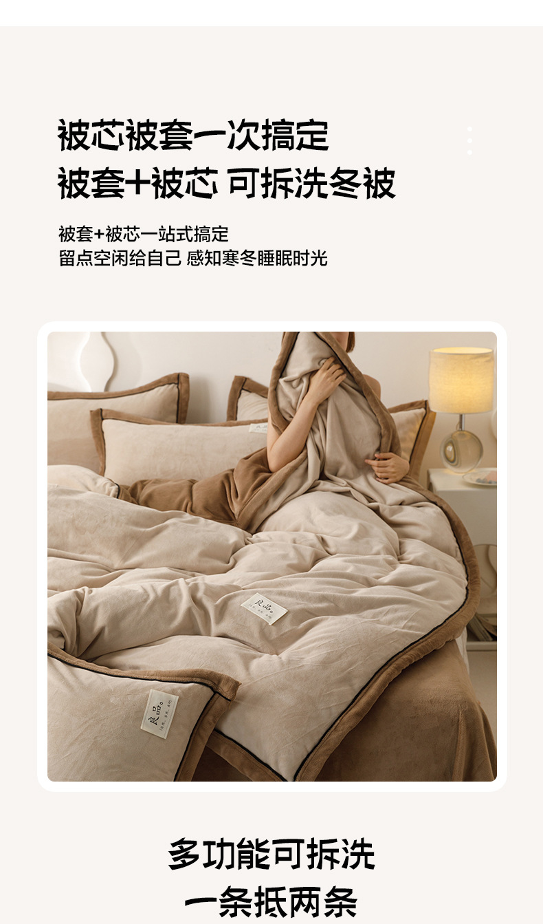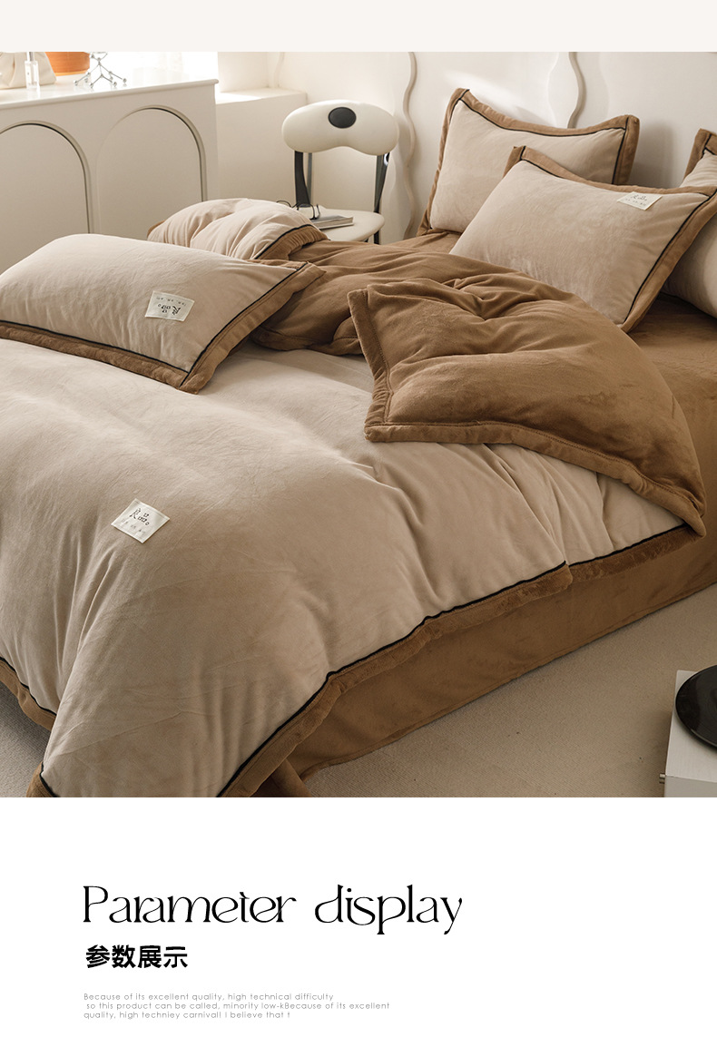 • 두꺼운 우유 벨벳 이불 커버-쌀 카멜 + 우유 차 커피