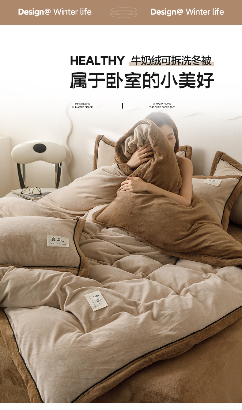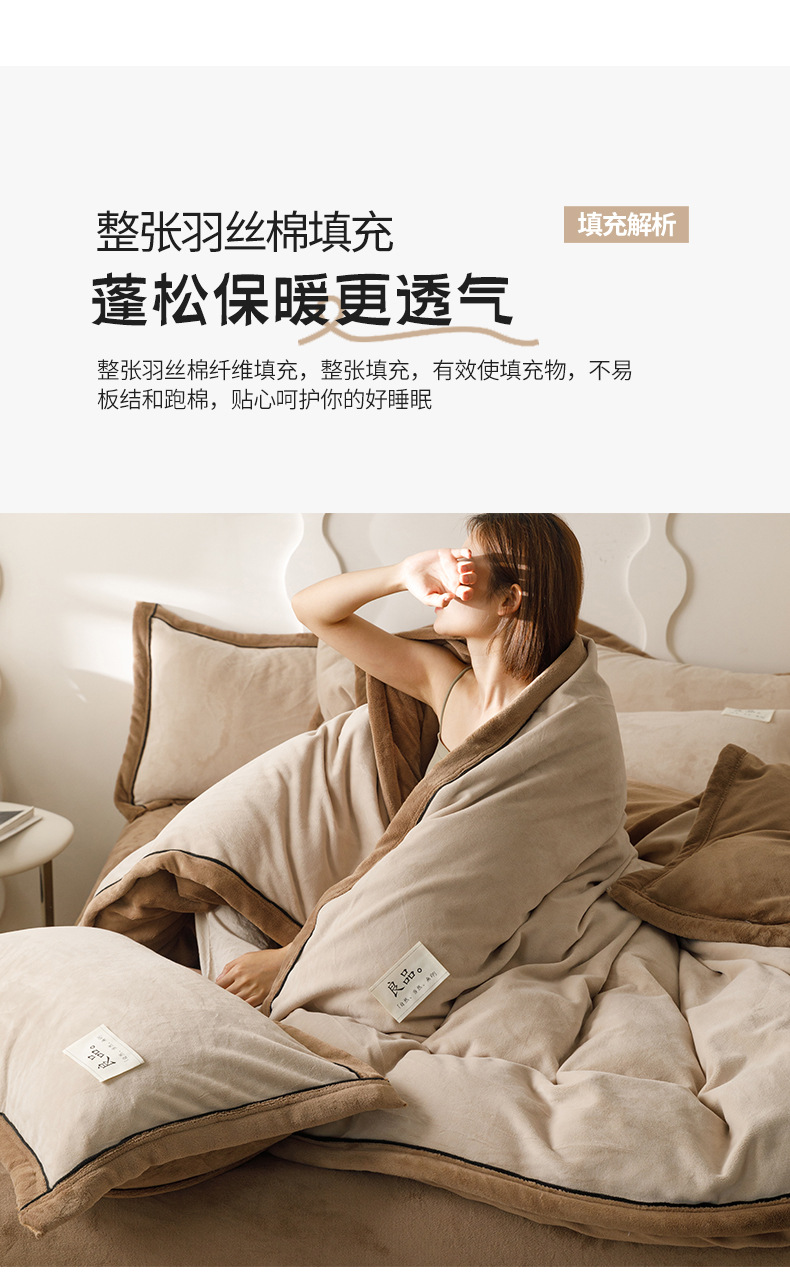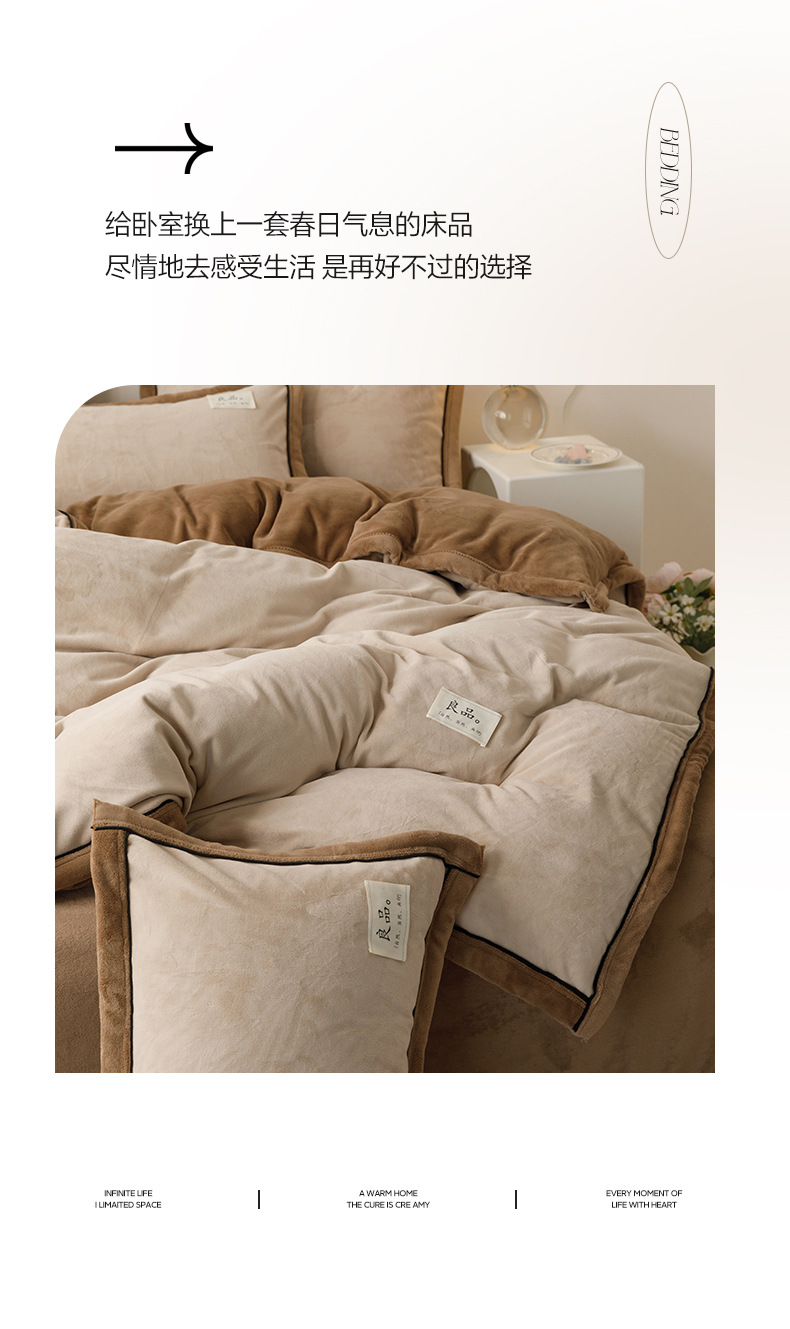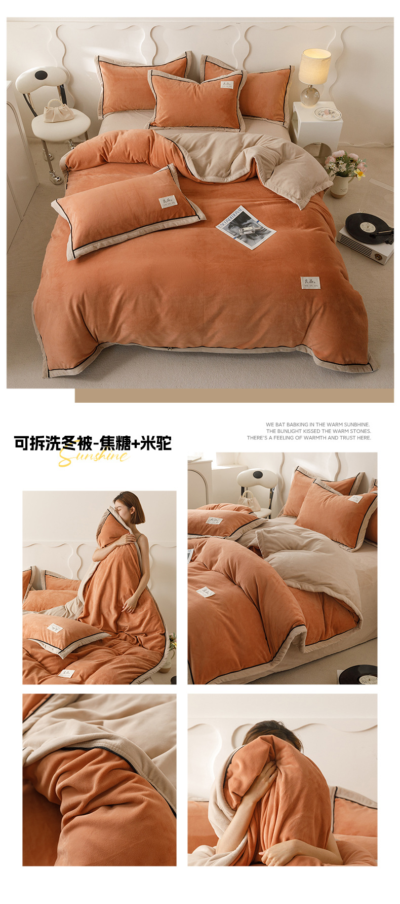 • 두꺼운 우유 벨벳 이불 커버-쌀 카멜 + 우유 차 커피