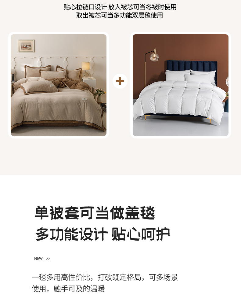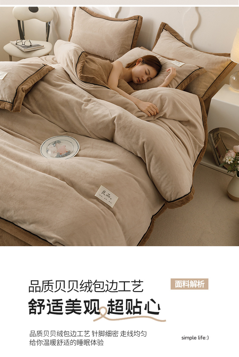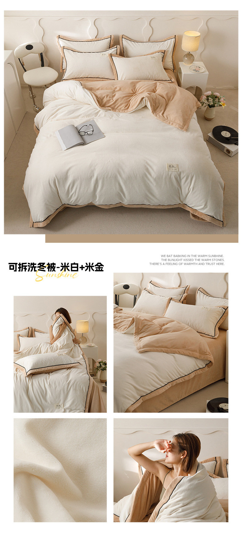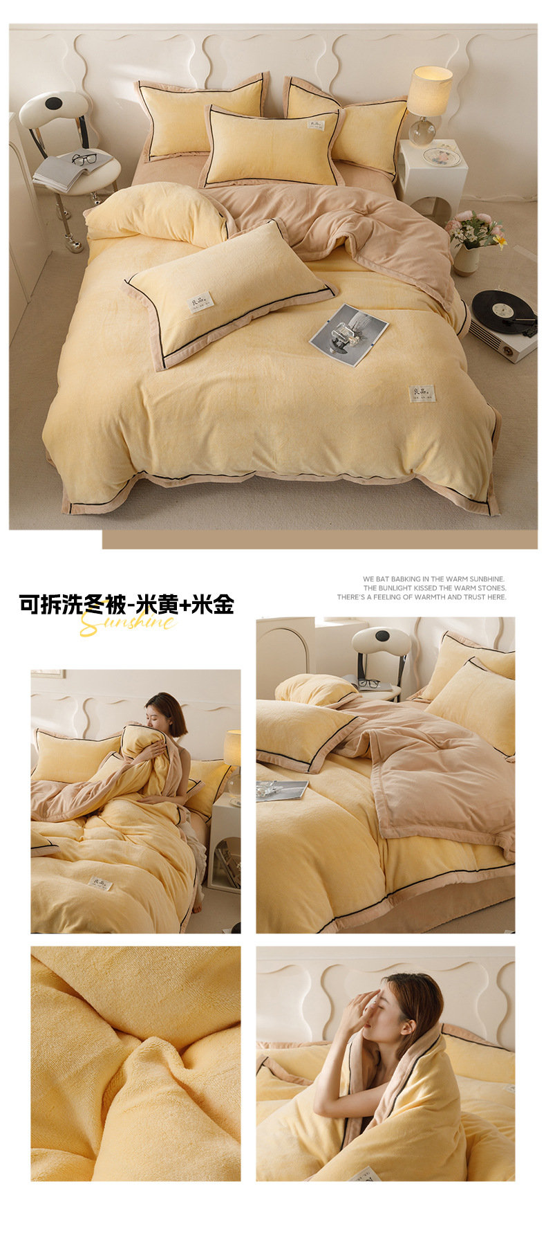 • 두꺼운 우유 벨벳 이불 커버-쌀 카멜 + 우유 차 커피