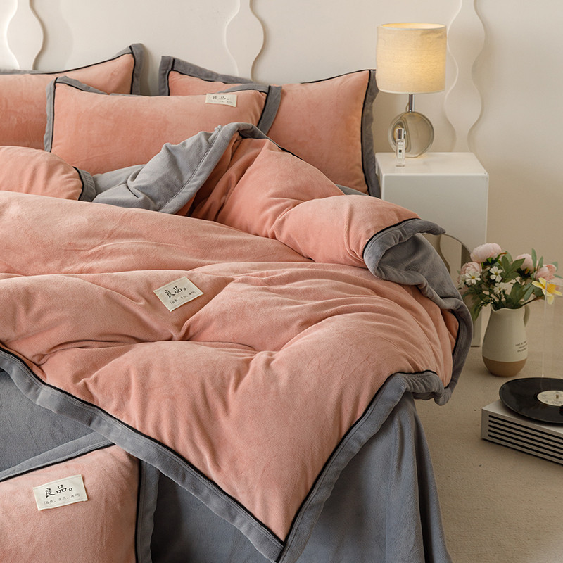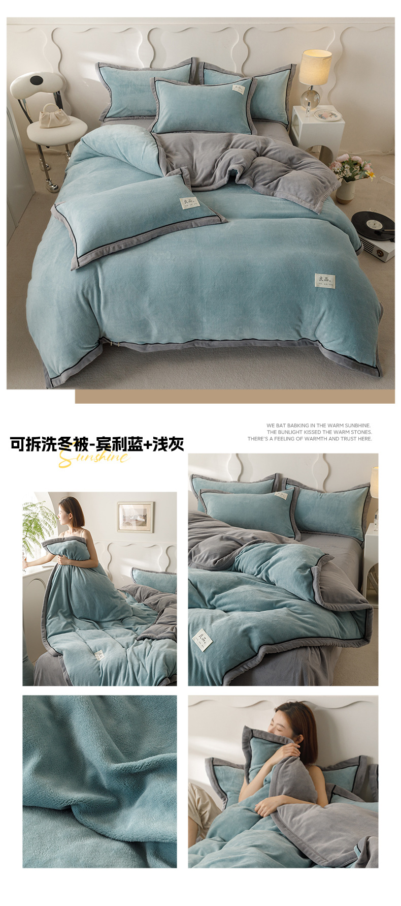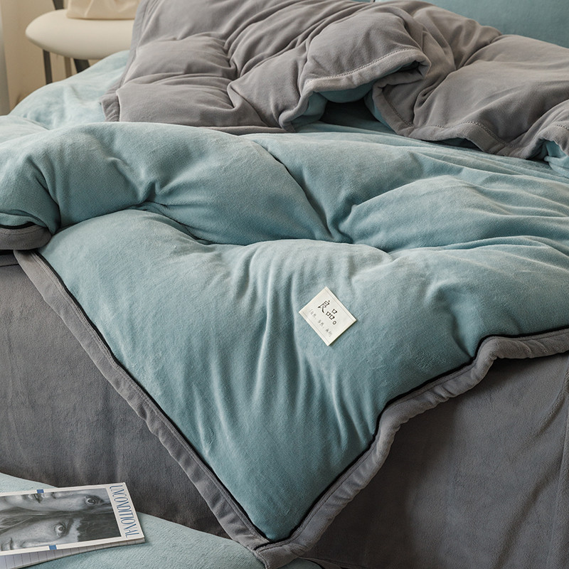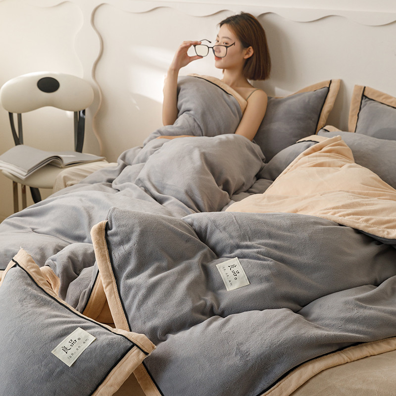 • 두꺼운 우유 벨벳 이불 커버-콩 페이스트 + 라이트 그레이