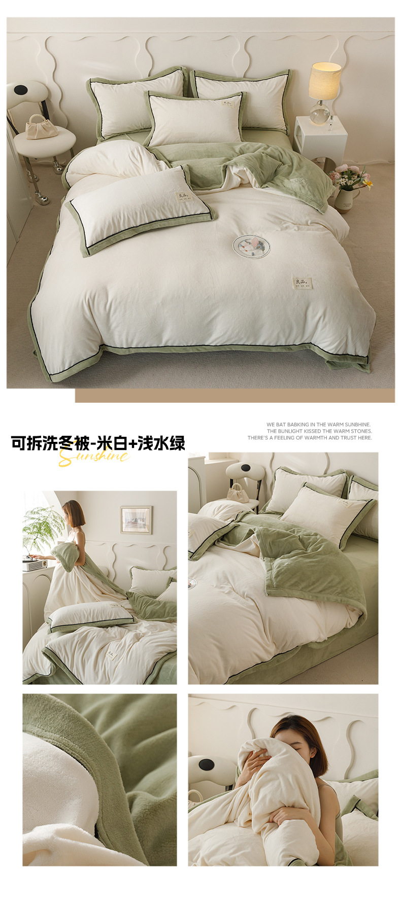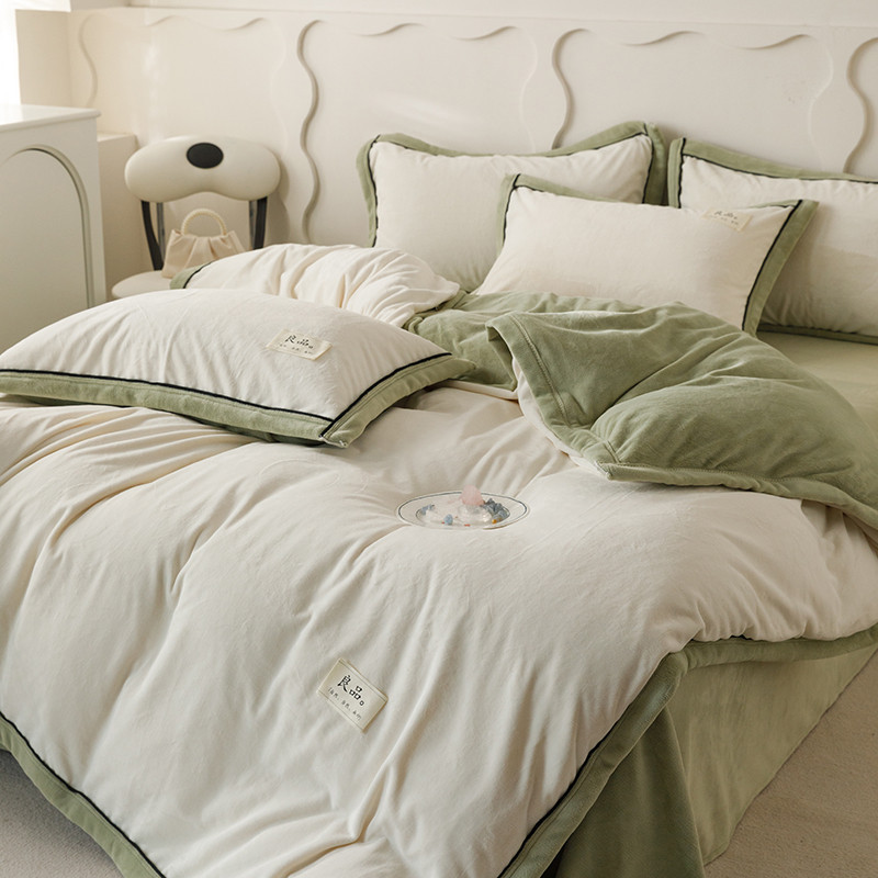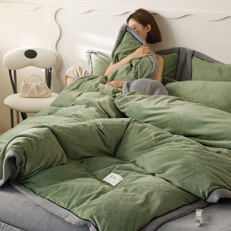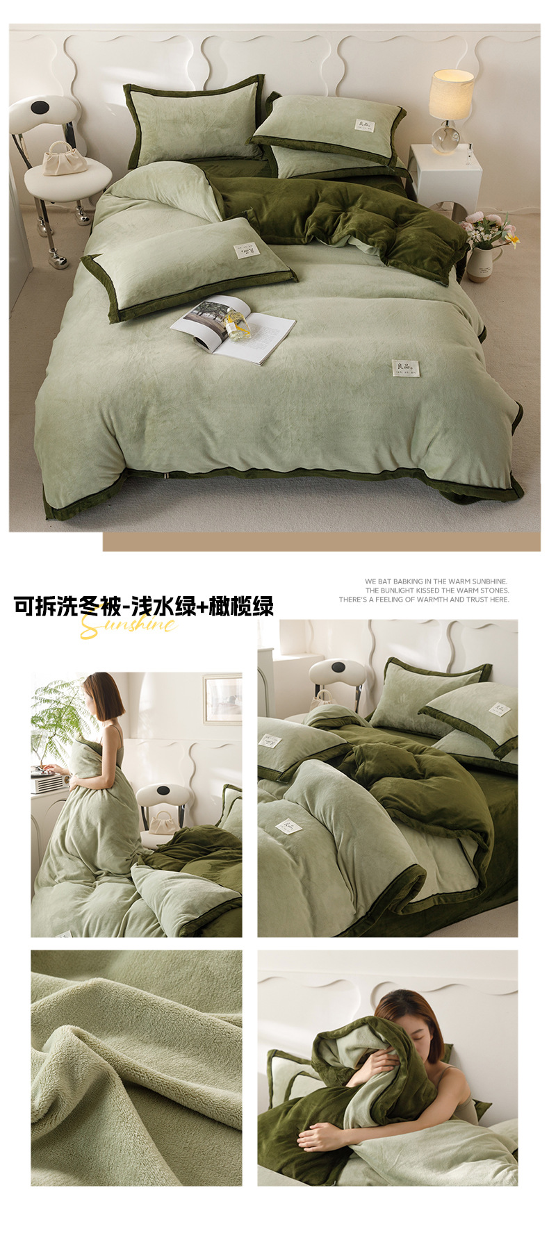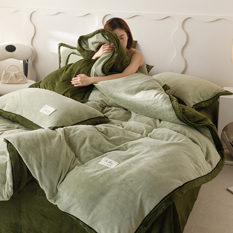 • 두꺼운 우유 벨벳 이불 커버-라이트 워터 그린 + 올리브 그린