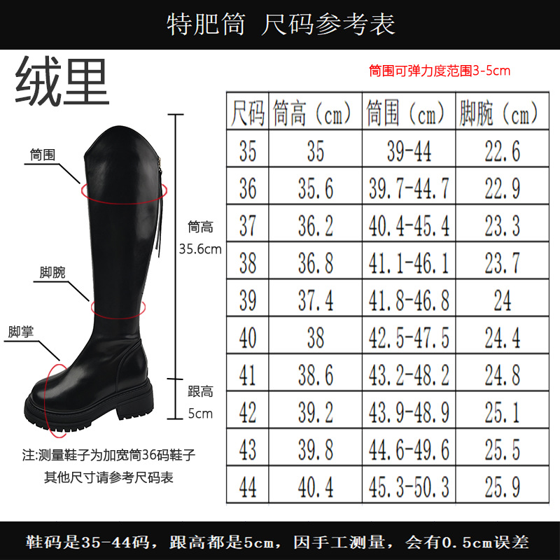 0288-8 긴 부츠 여성의 작은 내부 높이 부츠 두꺼운 다리 큰 붐 라이더 부츠 넓은 뚱뚱한 발 플러스 사이즈 여성 부츠