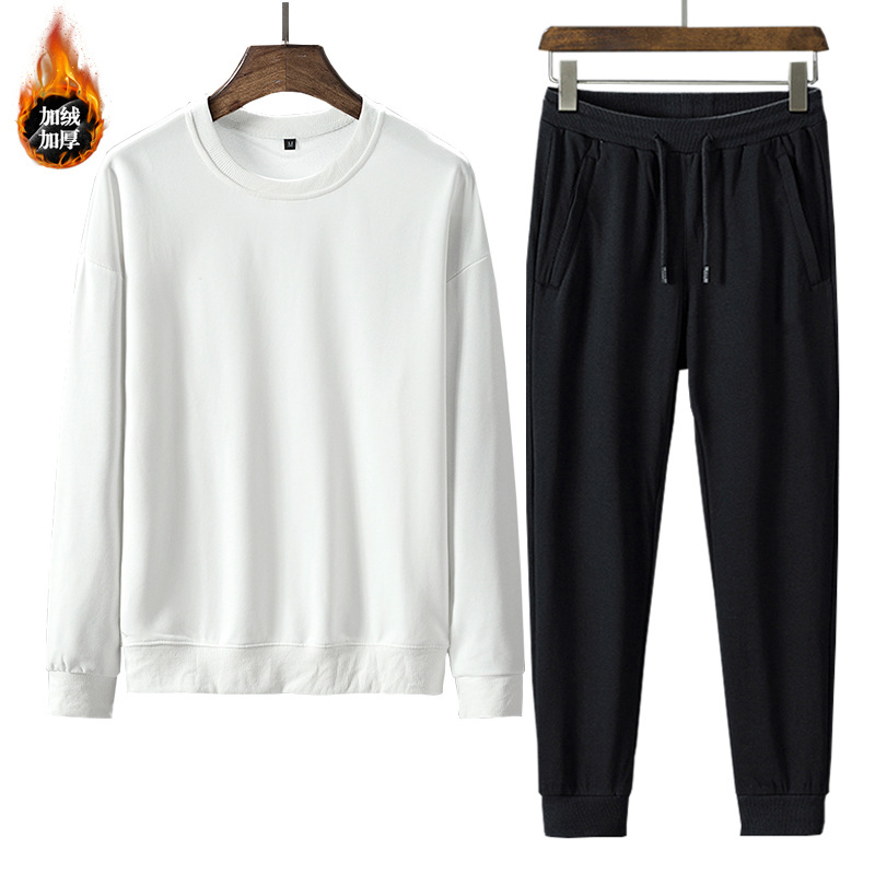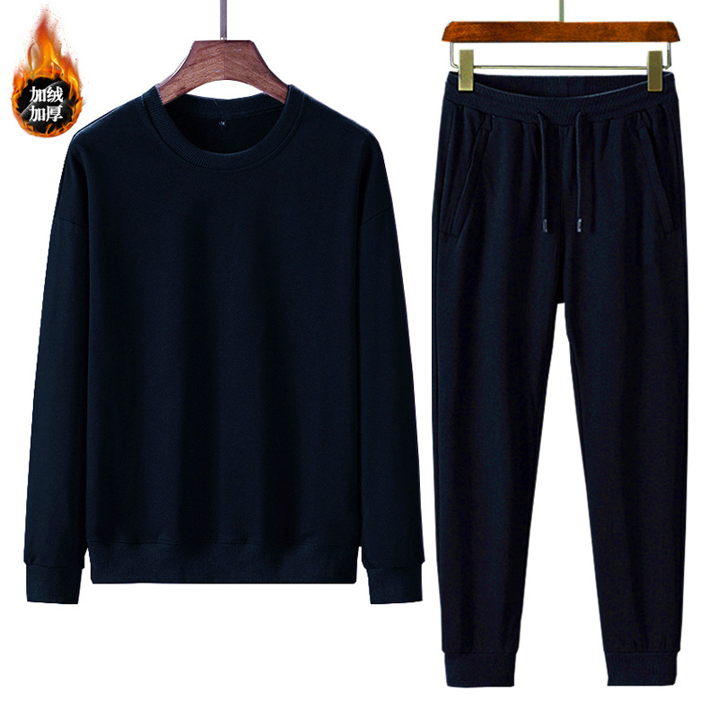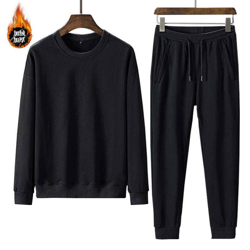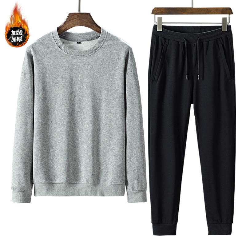 면 세트 남자의 가을과 겨울 느슨한 플러스 사이즈 기모 스웨터 바지 투피스 세트 커플 스포츠 캐주얼 세트스토어 가기