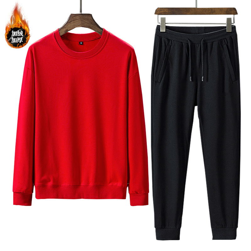 면 세트 남자의 가을과 겨울 느슨한 플러스 사이즈 기모 스웨터 바지 투피스 세트 커플 스포츠 캐주얼 세트