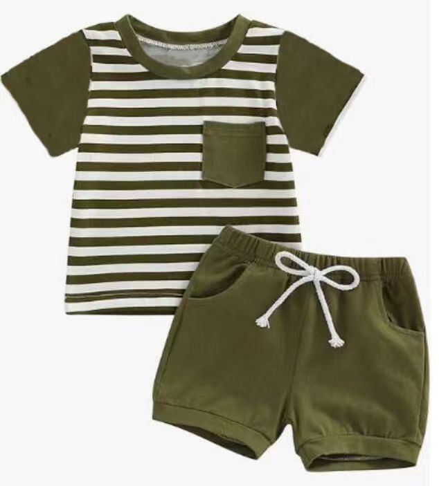대외 무역 어린이 반팔 반바지 바느질 어린이 세트 여름 단색 조끼 줄무늬 바느질스토어 가기