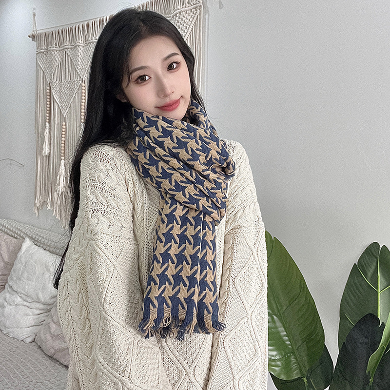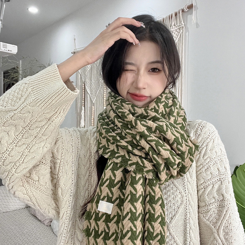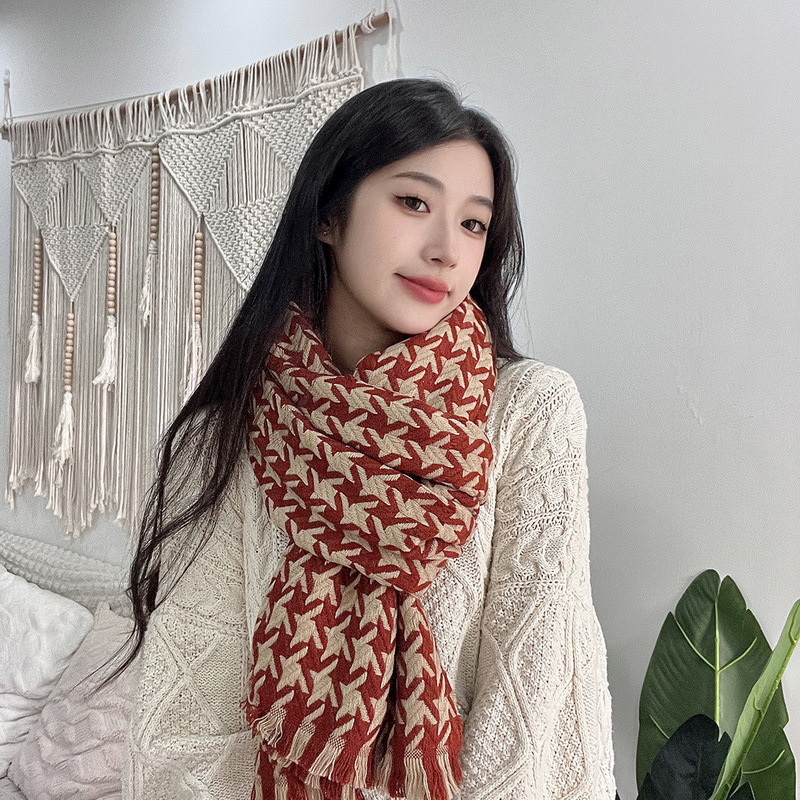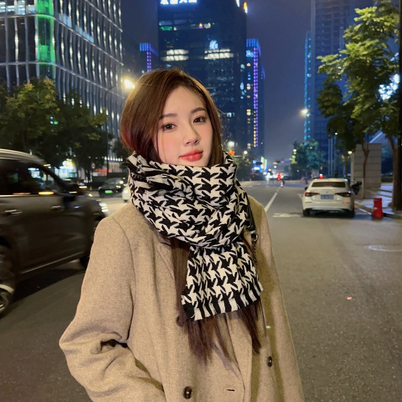 새로운 한국식 짧은 털 스테레오 하운즈투스 스카프 인터넷 연예인 라이브 핫 체크 스카프에서 유행 모든 경기