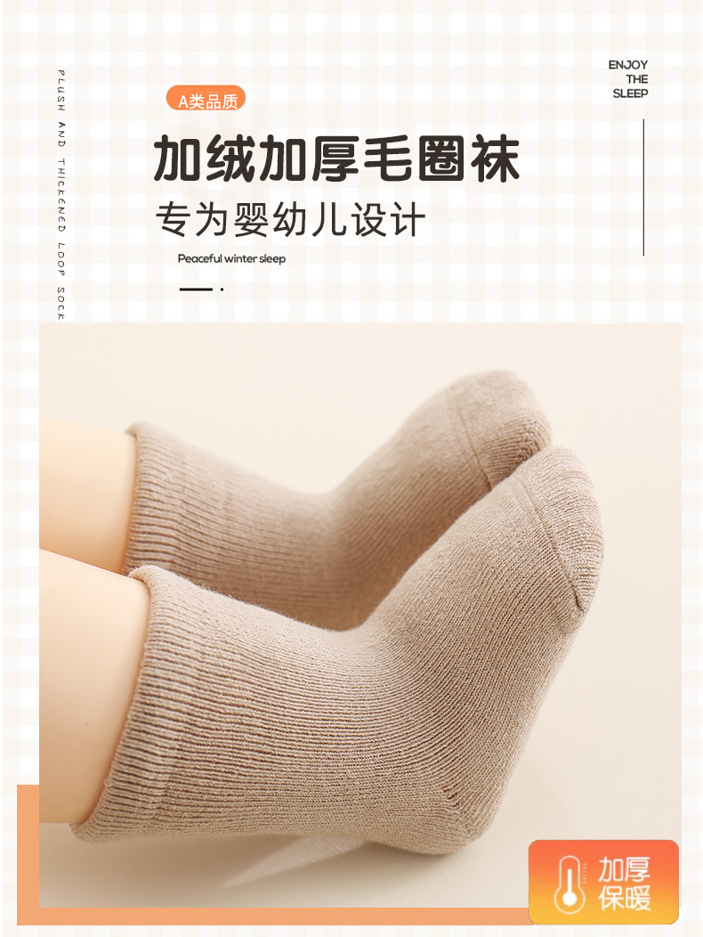 23 가을과 겨울 테리 두꺼운 아기 양말 느슨한 미끄럼 방지 아기 바닥 양말 신생아면 양말스토어 가기
