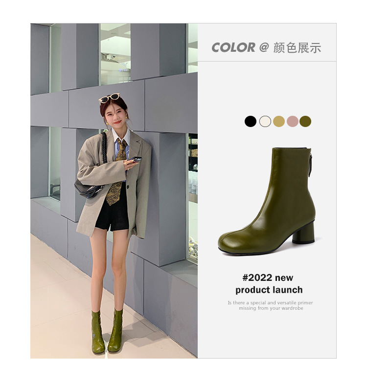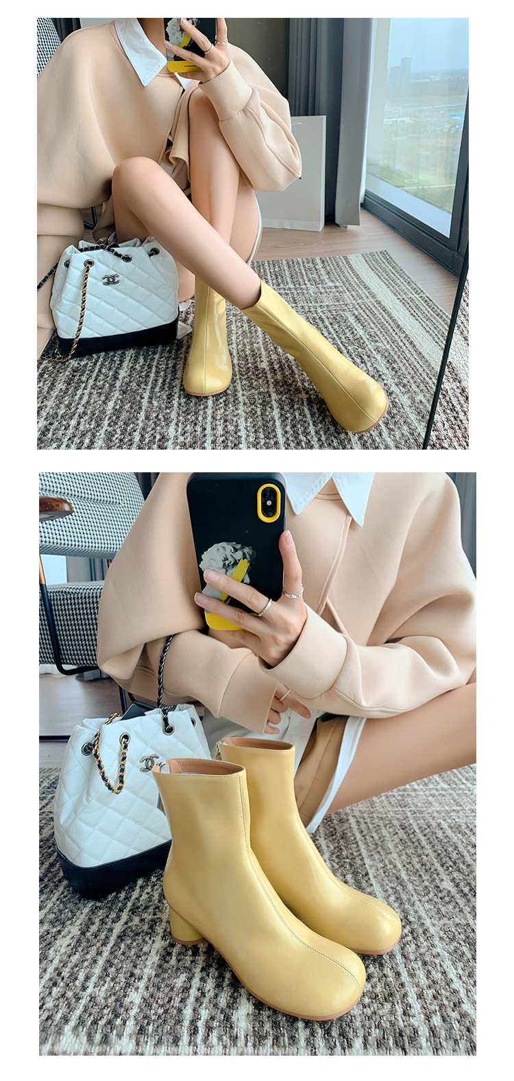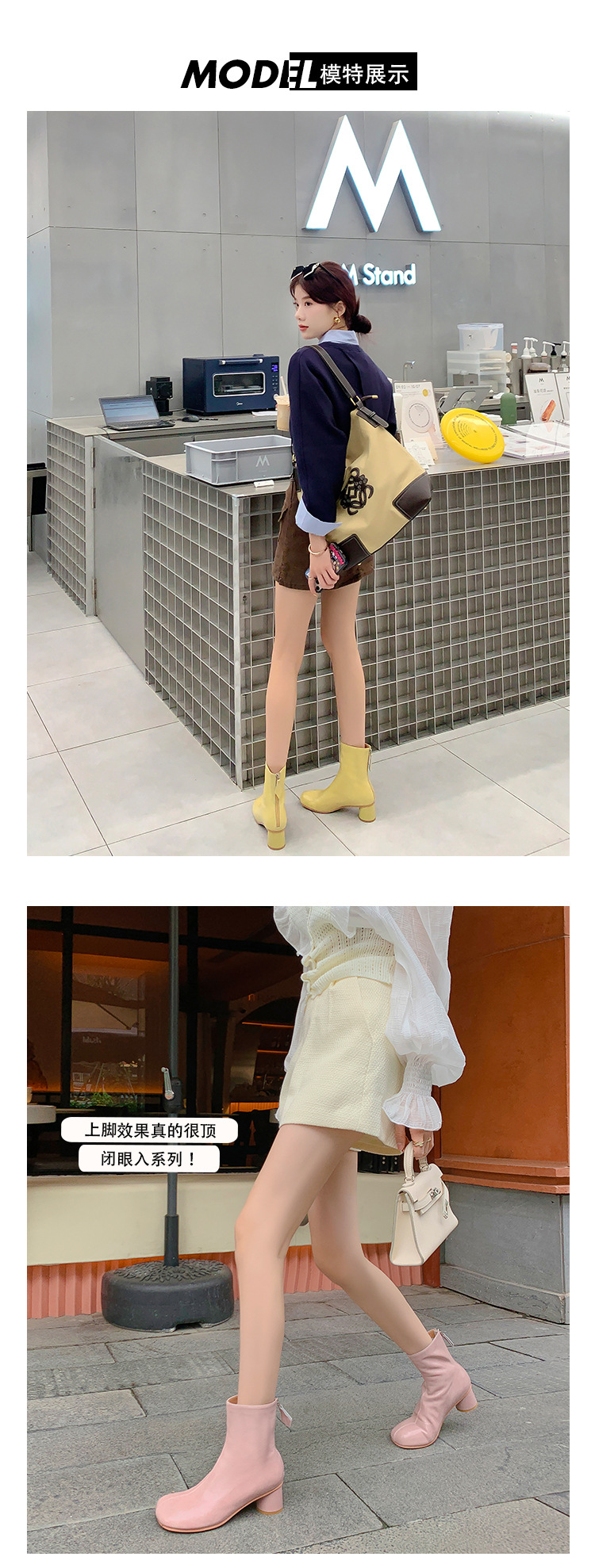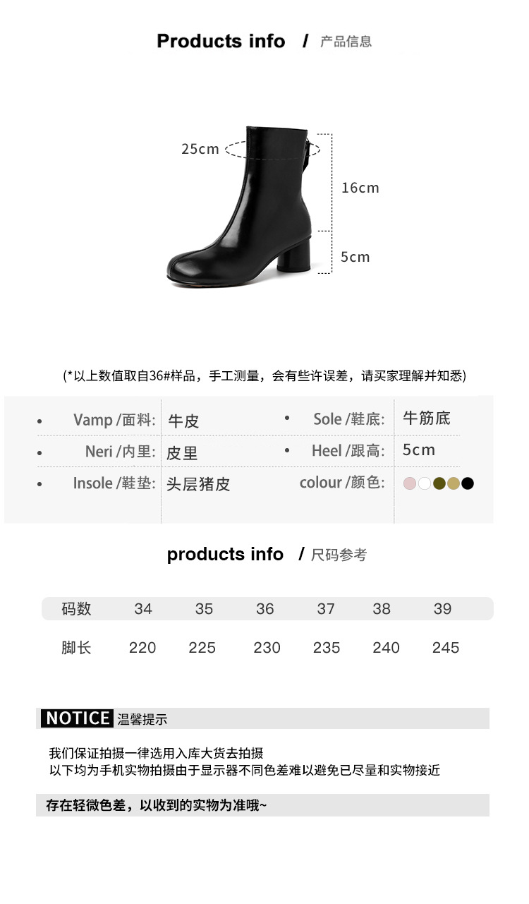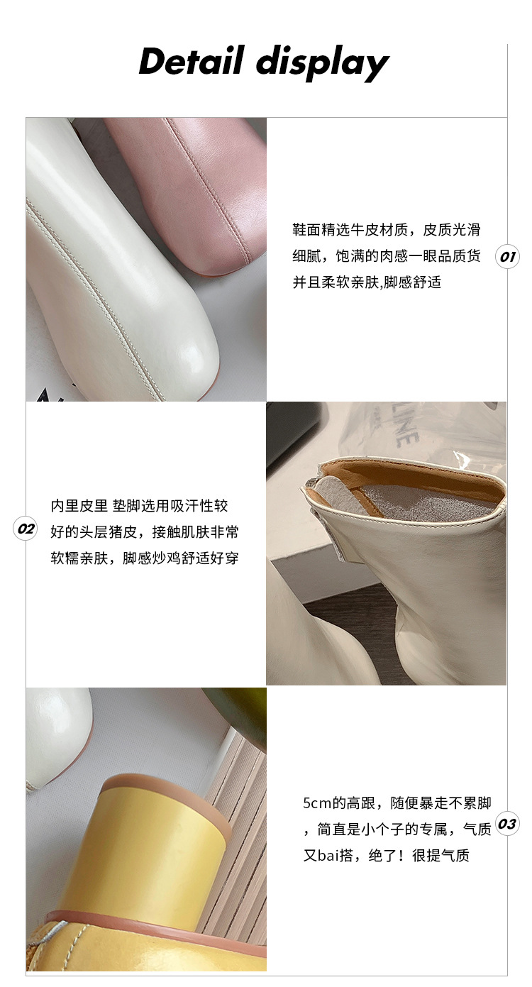 정품 가죽 밀크 화이트 우아한 사교적 인 프랑스 작은 발목 부츠 두꺼운 굽 큰 머리 얇은 부츠 가벼운 색 망고 헤드 여성용 작은 짧은 부츠스토어 가기
