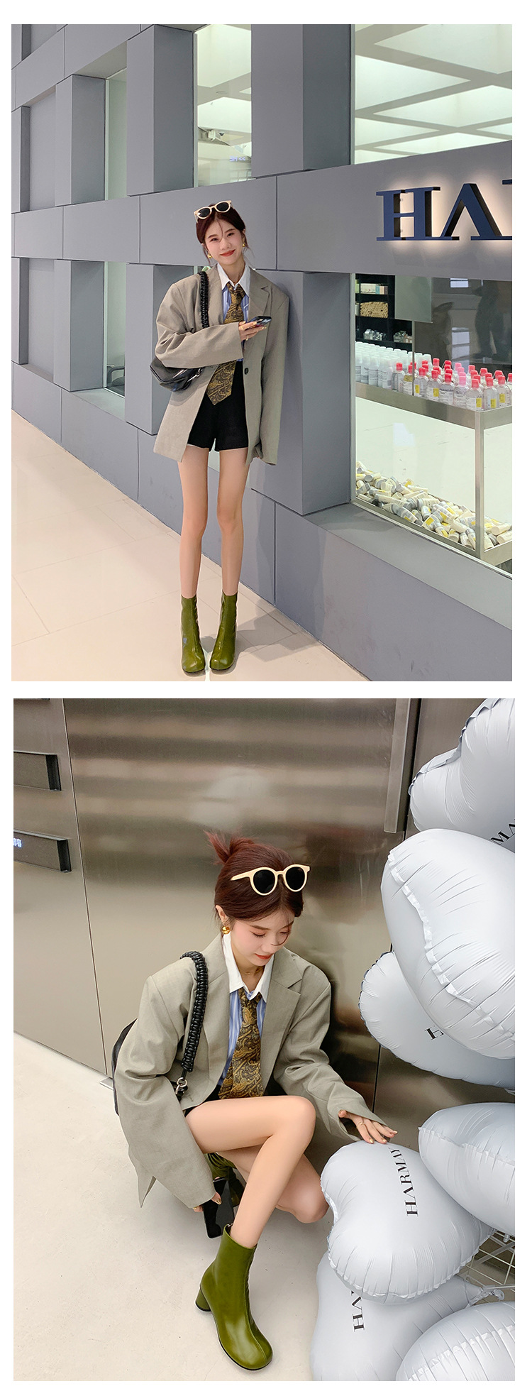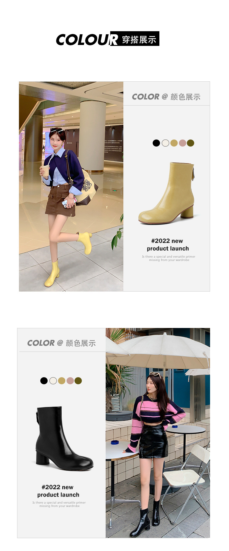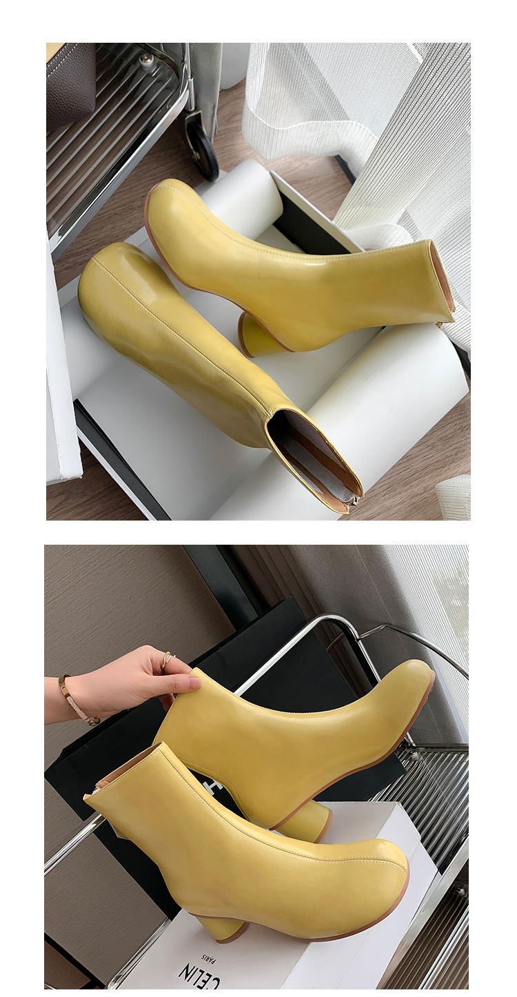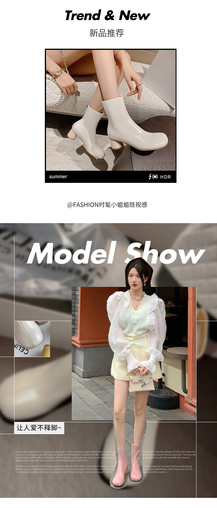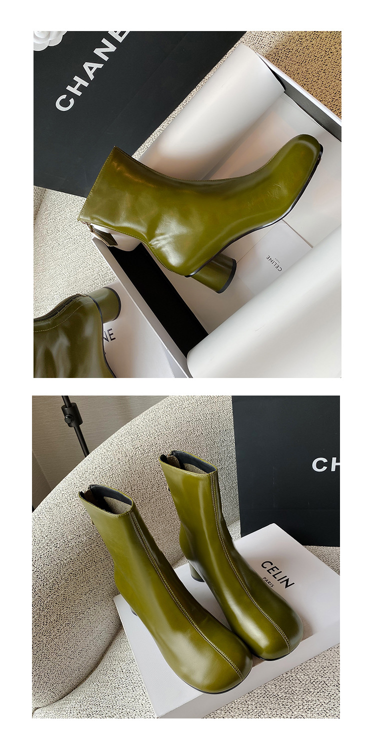 정품 가죽 밀크 화이트 우아한 사교적 인 프랑스 작은 발목 부츠 두꺼운 굽 큰 머리 얇은 부츠 가벼운 색 망고 헤드 여성용 작은 짧은 부츠스토어 가기