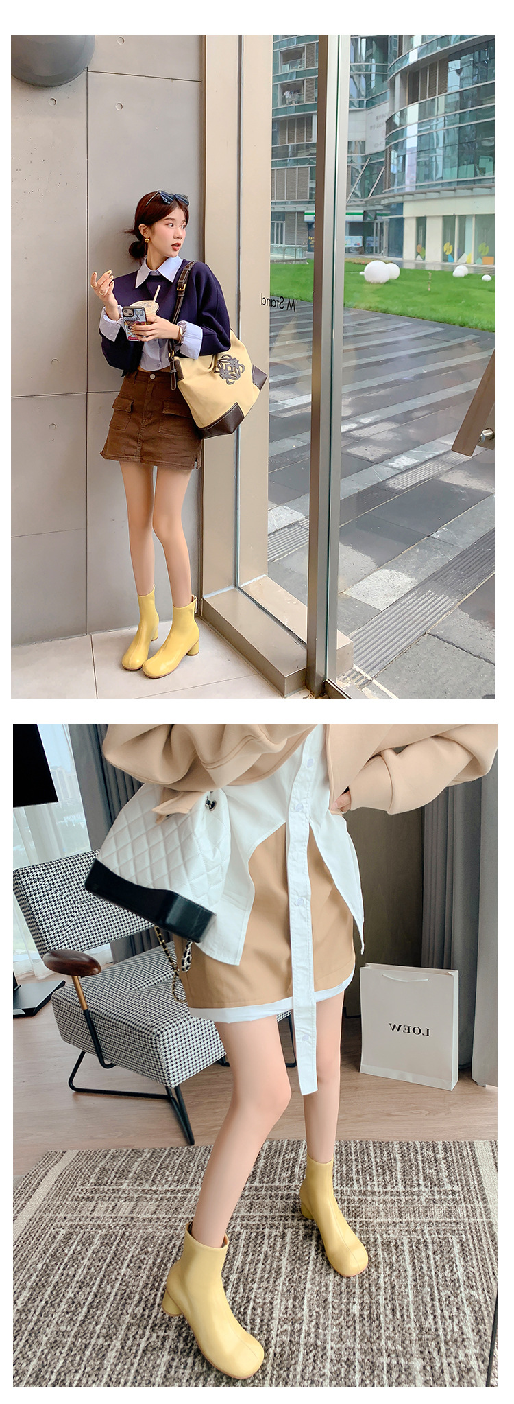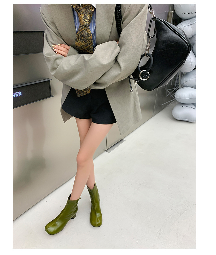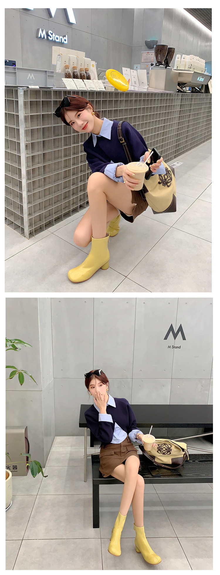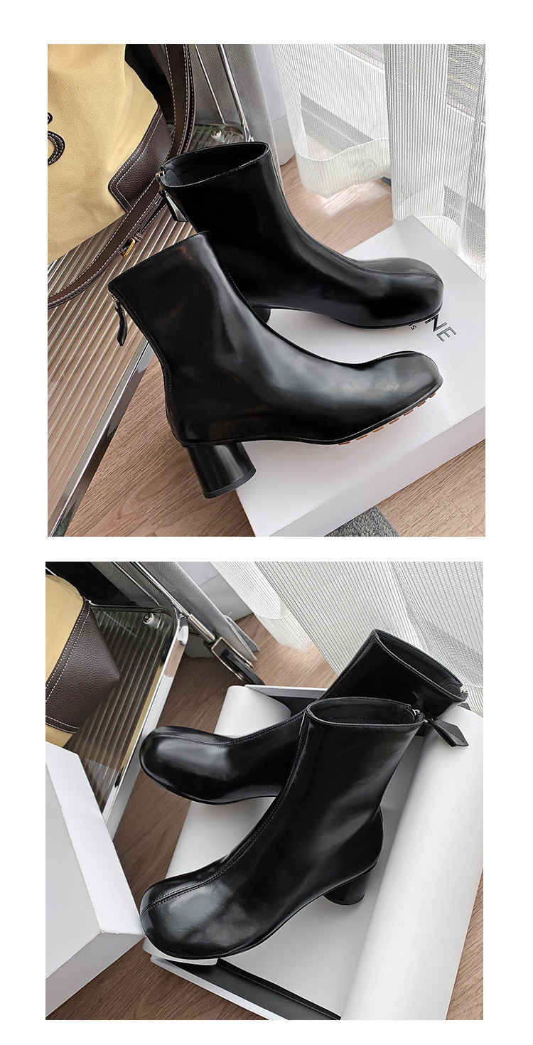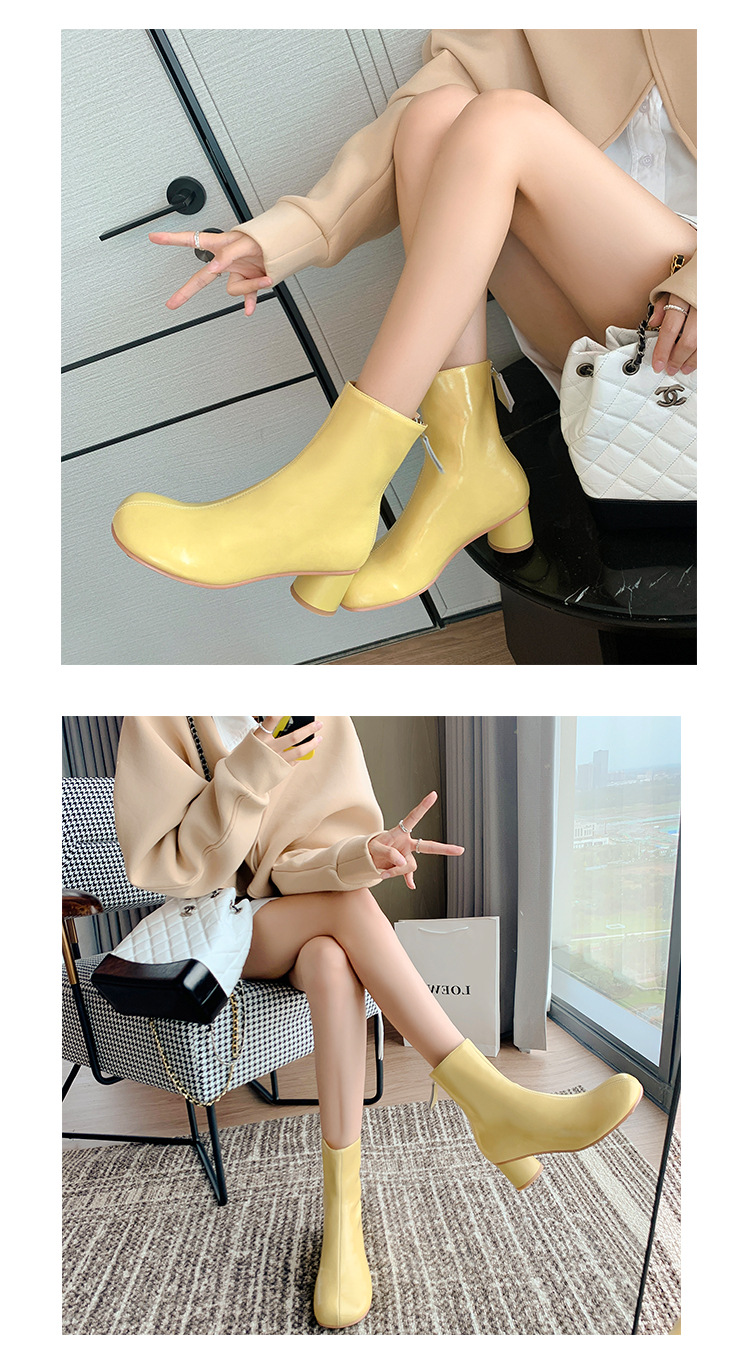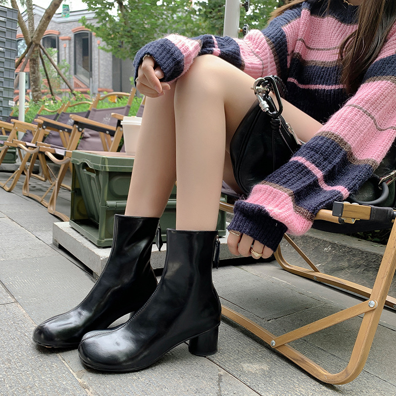 정품 가죽 밀크 화이트 우아한 사교적 인 프랑스 작은 발목 부츠 두꺼운 굽 큰 머리 얇은 부츠 가벼운 색 망고 헤드 여성용 작은 짧은 부츠스토어 가기