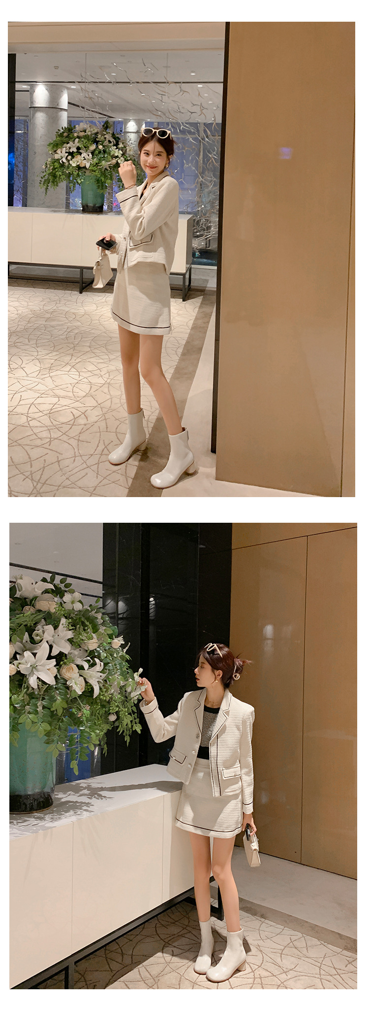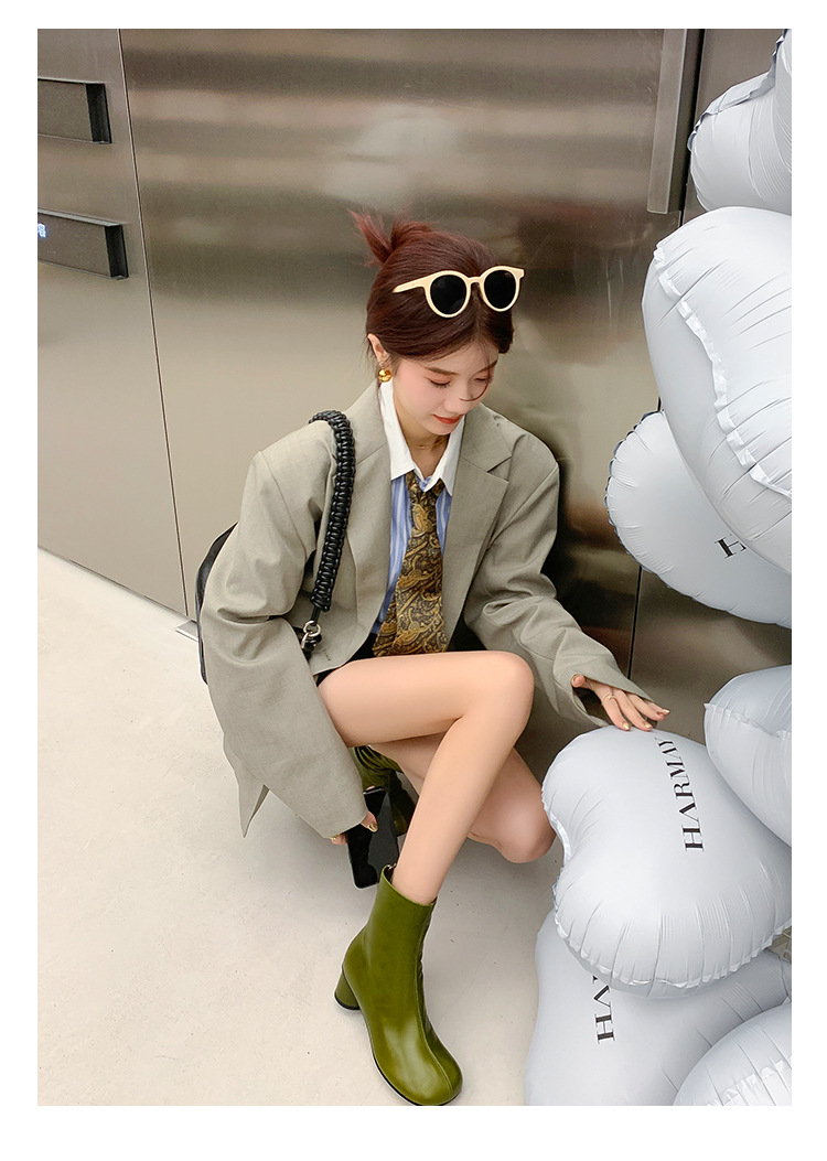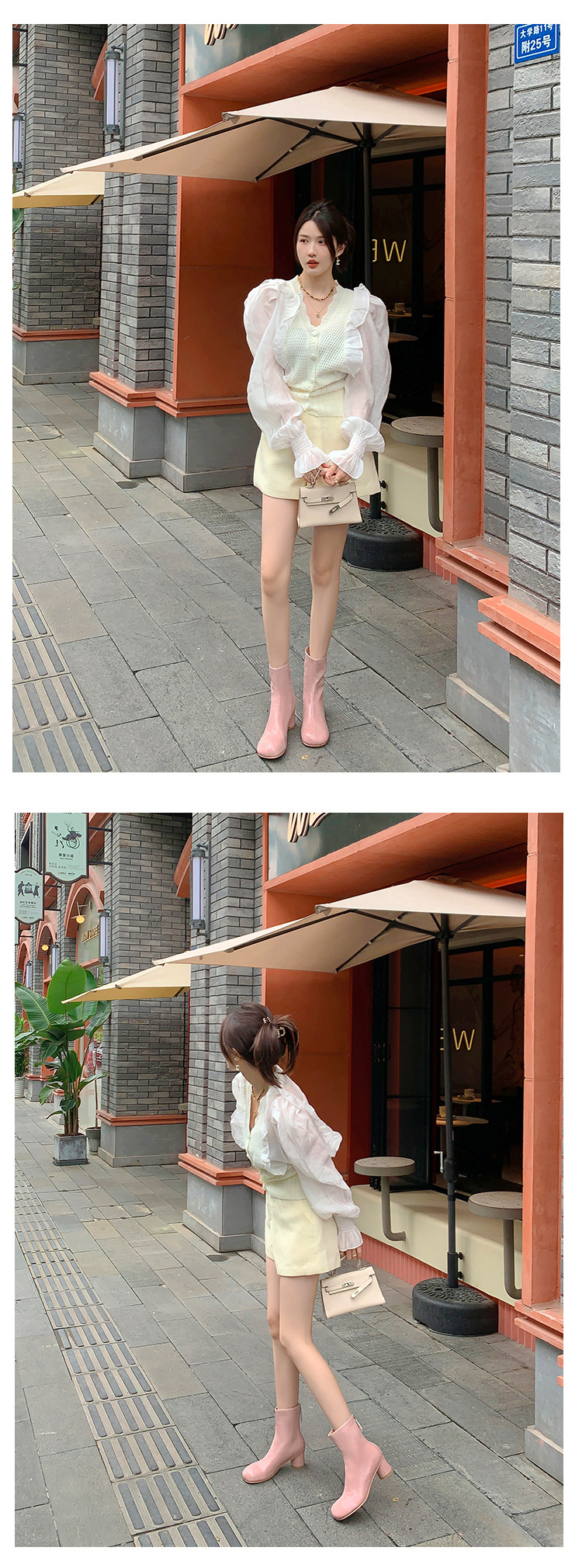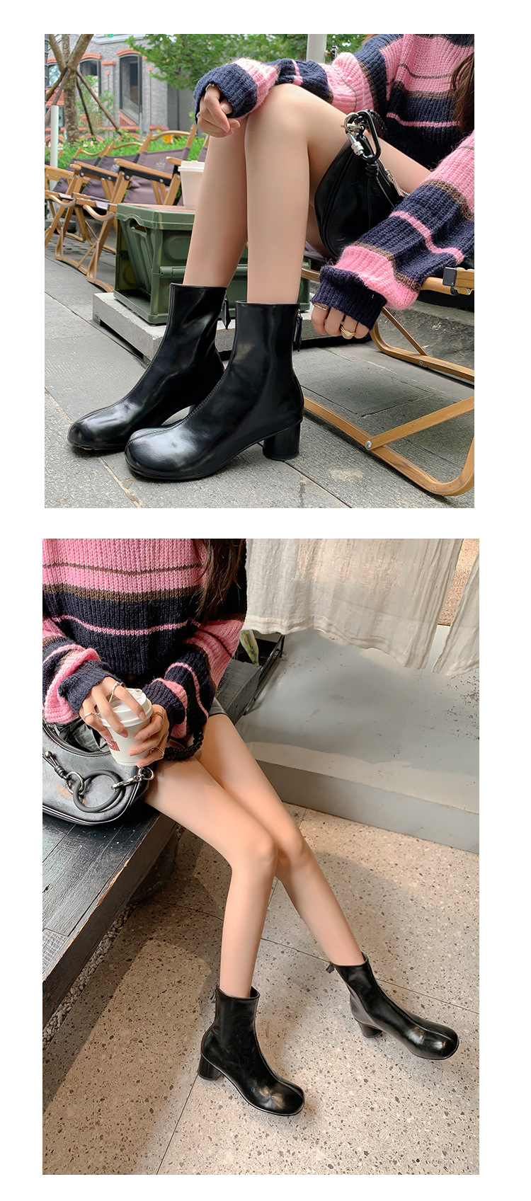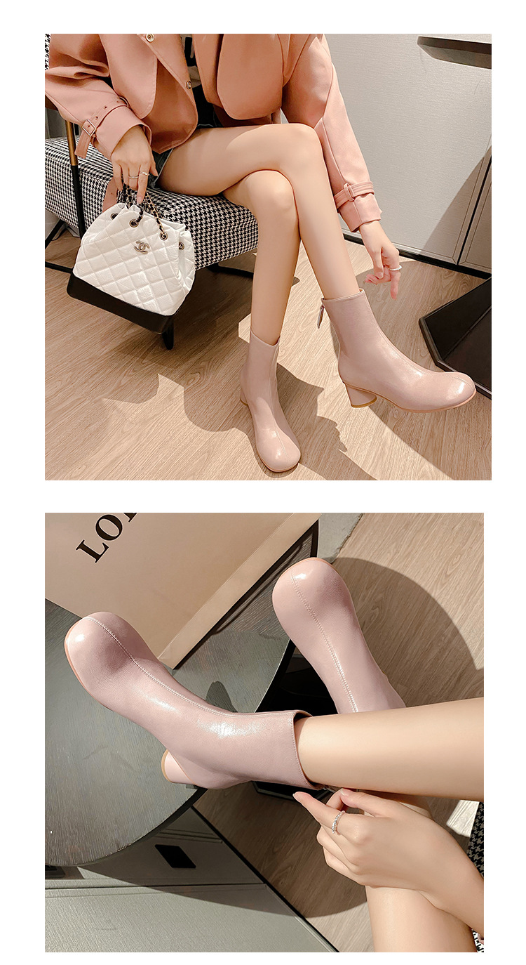 정품 가죽 밀크 화이트 우아한 사교적 인 프랑스 작은 발목 부츠 두꺼운 굽 큰 머리 얇은 부츠 가벼운 색 망고 헤드 여성용 작은 짧은 부츠스토어 가기