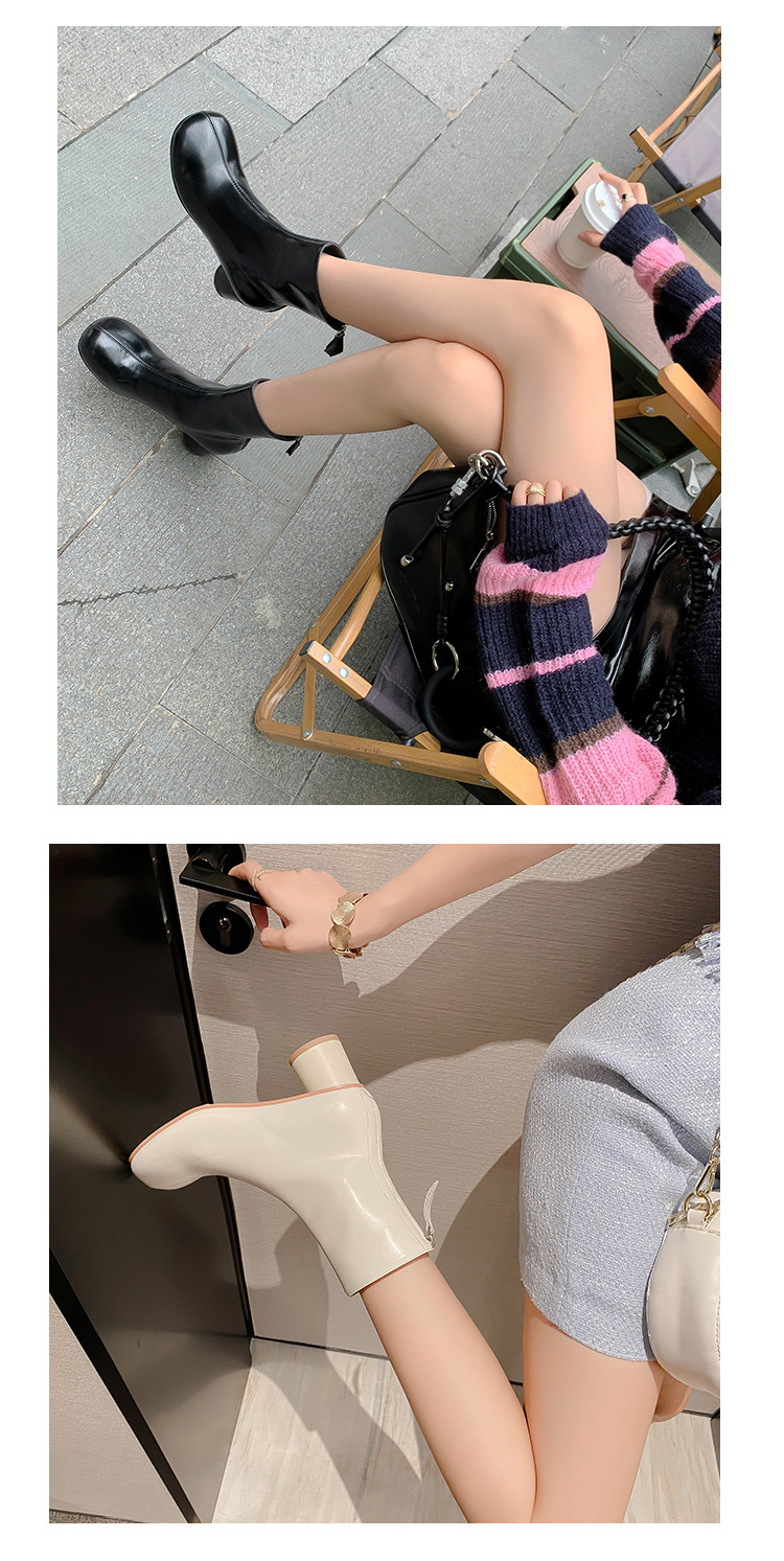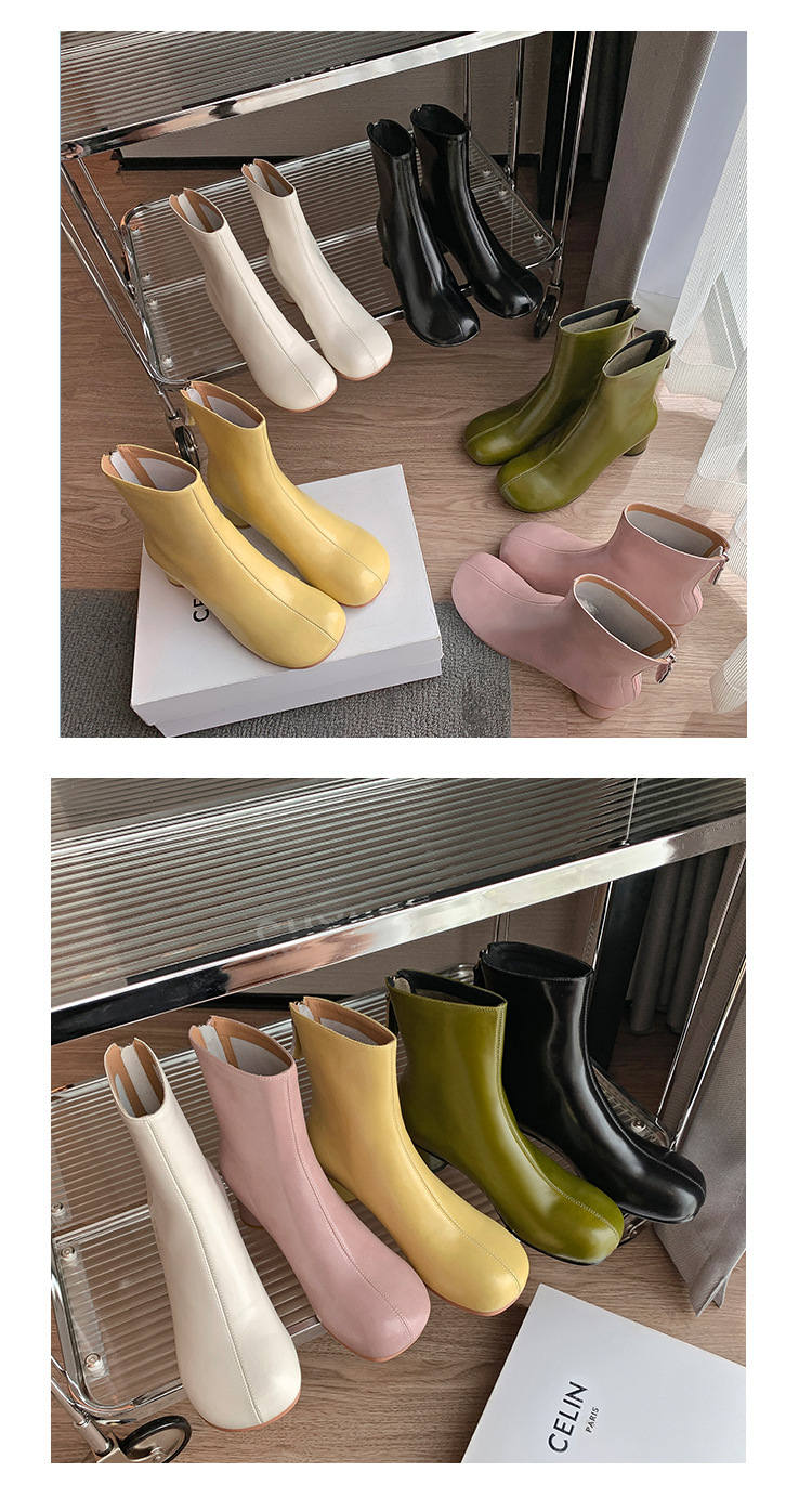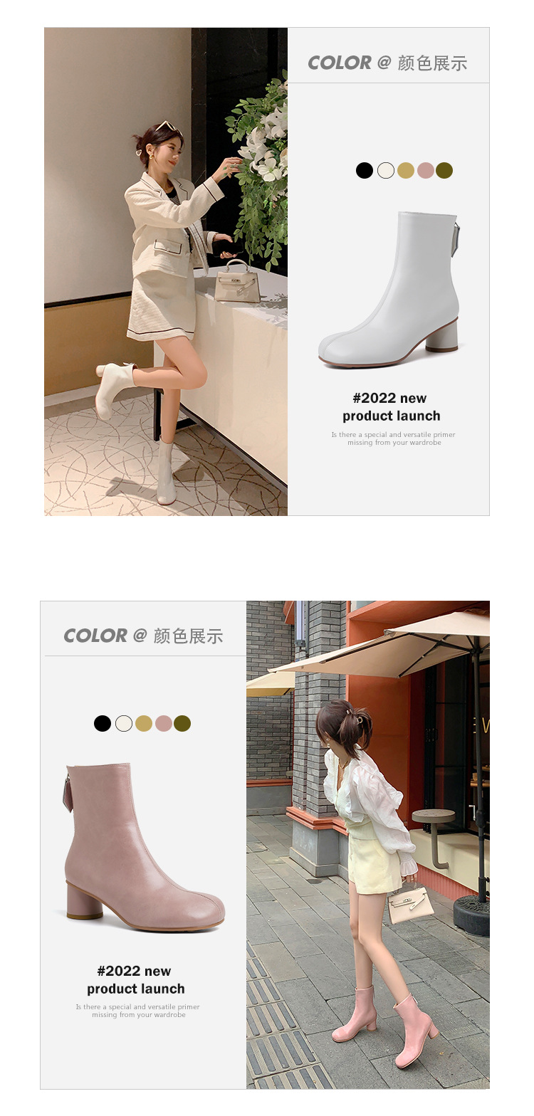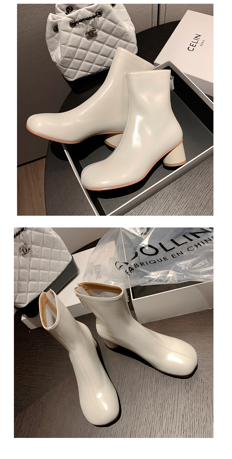 정품 가죽 밀크 화이트 우아한 사교적 인 프랑스 작은 발목 부츠 두꺼운 굽 큰 머리 얇은 부츠 가벼운 색 망고 헤드 여성용 작은 짧은 부츠