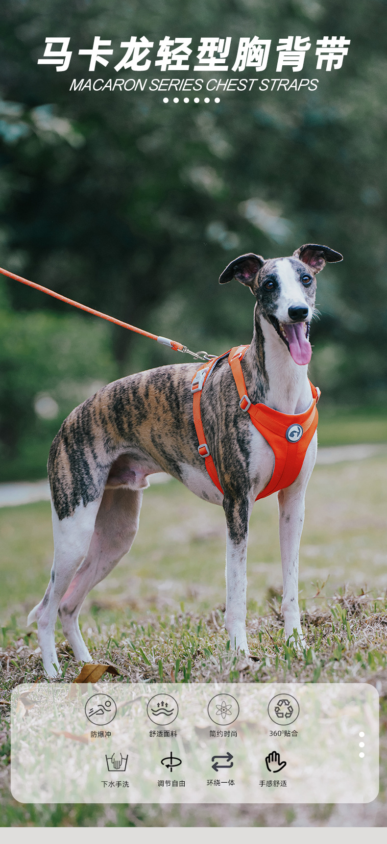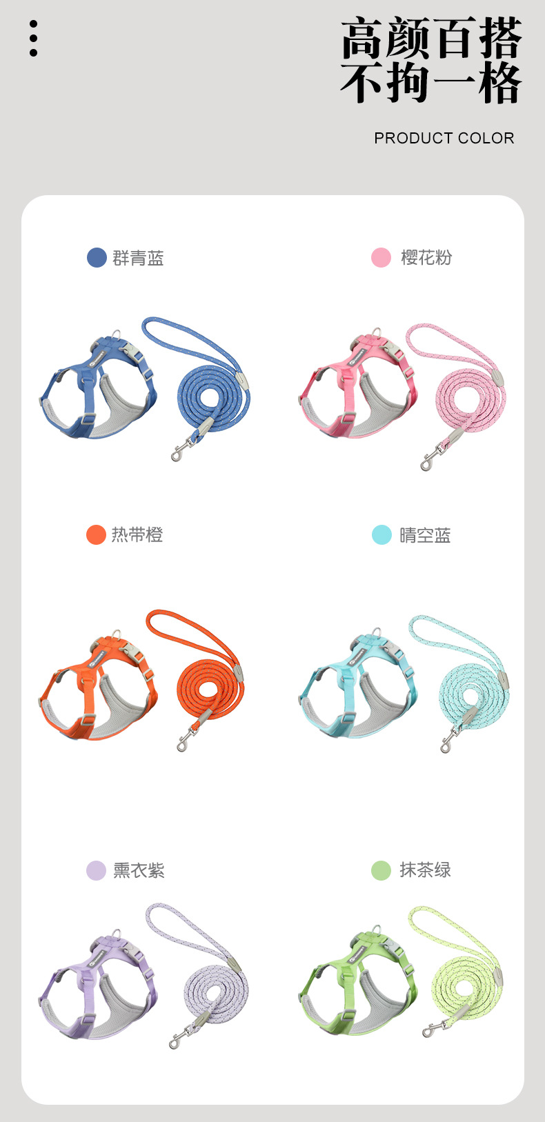 새로운 마카롱 한국식 일본식 중소형 개 애완 동물 용품 여름 개 로프 칼라 견인 로프 가슴 스트랩스토어 가기