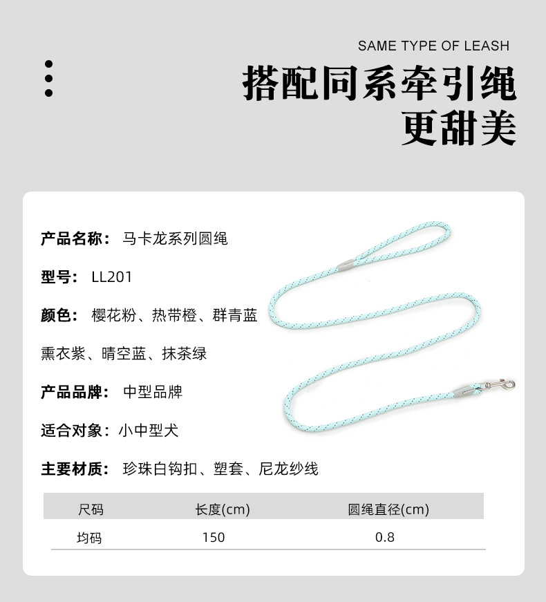 새로운 마카롱 한국식 일본식 중소형 개 애완 동물 용품 여름 개 로프 칼라 견인 로프 가슴 스트랩