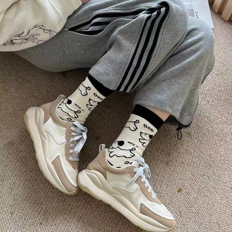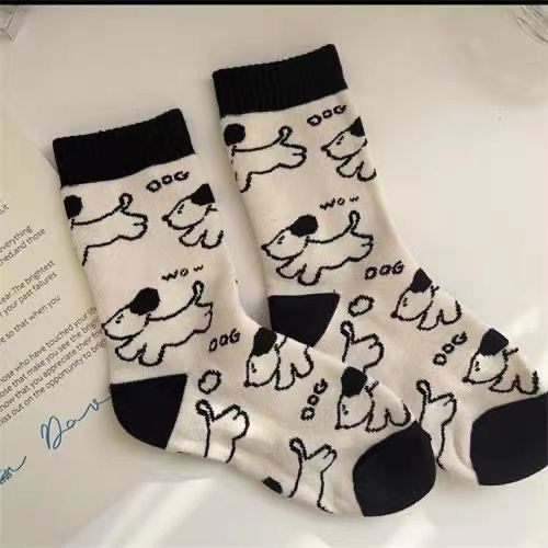 두꺼운 양말 여성의 가을과 겨울 따뜻한 귀여운 만화 조수 양말 튜브 양말 강아지 스타킹 학업 스타일