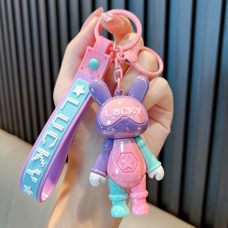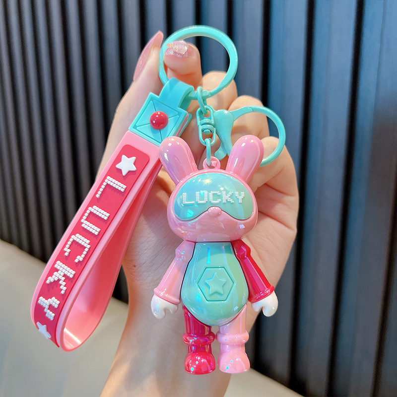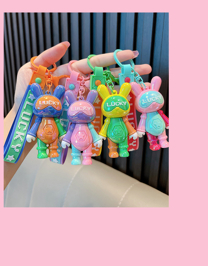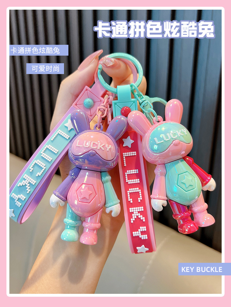 귀여운 색상 일치 멋진 토끼 열쇠 고리 색상 일치 토끼 자동차 열쇠 고리 책가방 펜던트 커플 작은 선물 도매