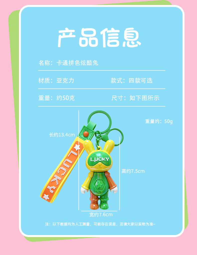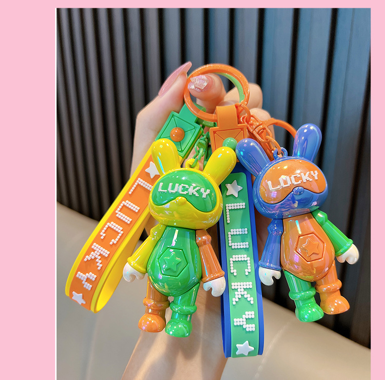 귀여운 색상 일치 멋진 토끼 열쇠 고리 색상 일치 토끼 자동차 열쇠 고리 책가방 펜던트 커플 작은 선물 도매스토어 가기
