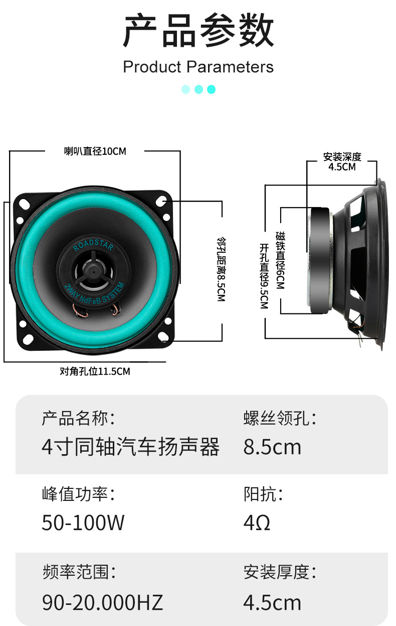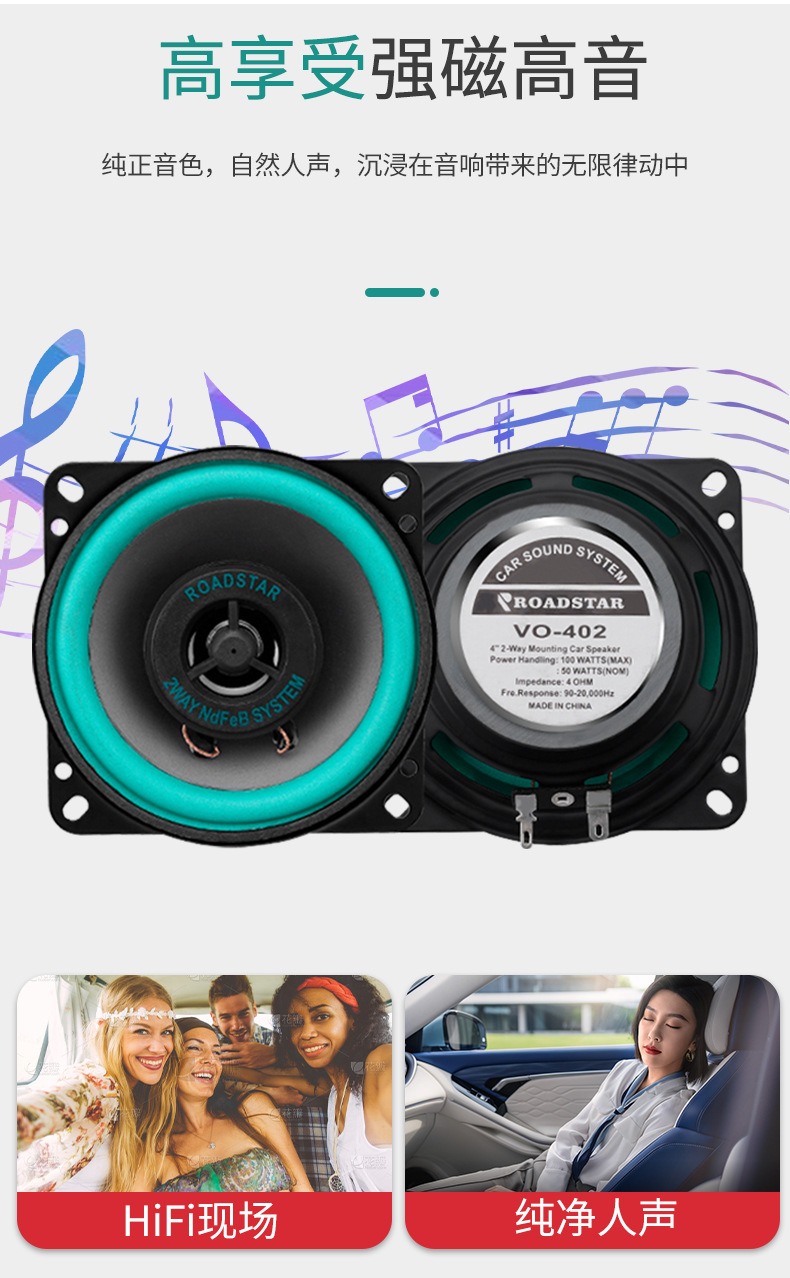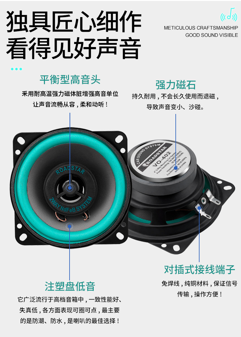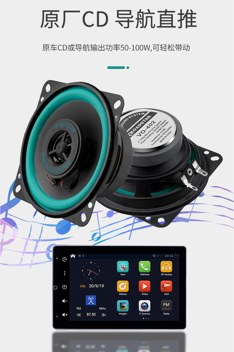 공장 직접 도매 대외 무역 국경 간 전자 상거래 자동차 오디오 스피커 4inch ROADSTAR 스피커 VO-402