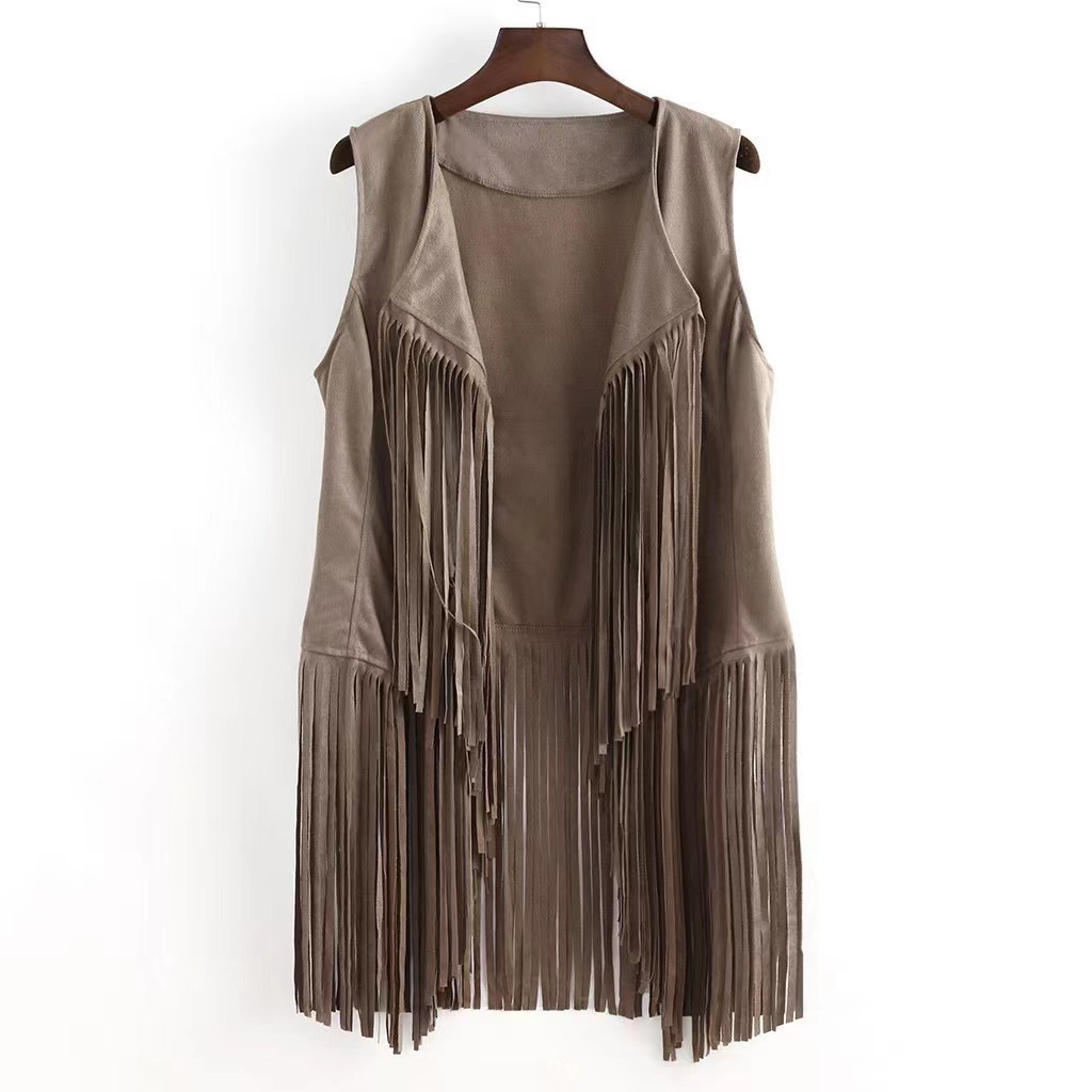 대외 무역 AliExpress 유럽과 미국 폭발성 술 코트 여성 사슴가죽 벨벳 버클 롱 조끼 코트 도매