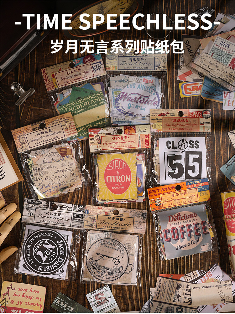 년 침묵 스티커 가방 복고풍 나이 느낌 어린이 스티커 손 계정 장식 재료 휴대 전화 쉘 스티커스토어 가기
