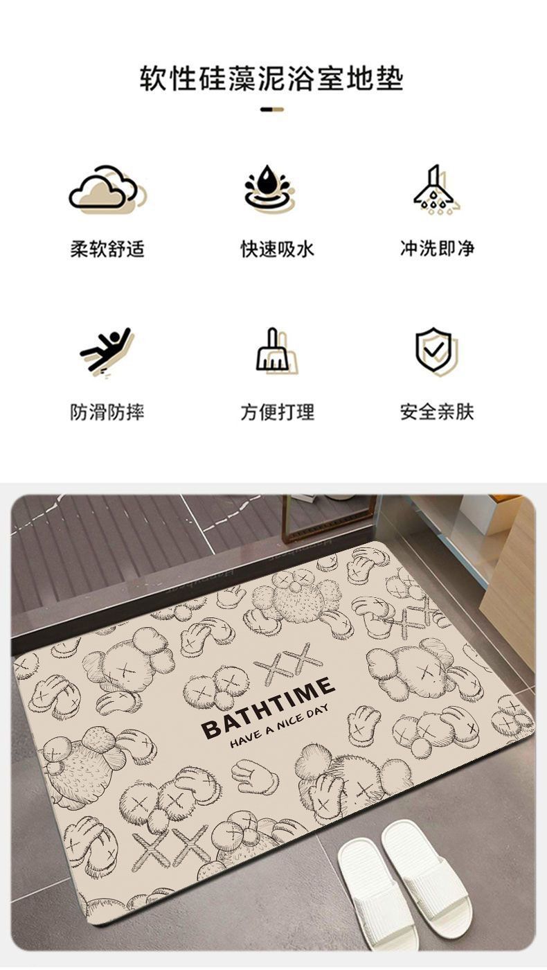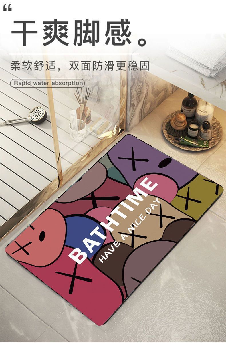 세척없는 규조 진흙 가정용 도어 입구 욕실 흡수성 바닥 매트 주방 및 욕실 고무 미끄럼 방지 대형 발 매트스토어 가기