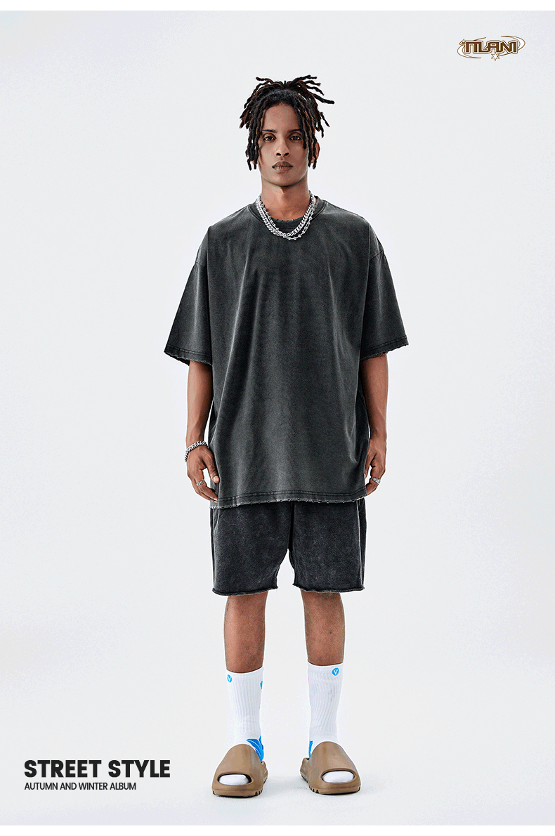 TILANI 남성과 여성의 무거운 티셔츠 아메리칸 스타일 레트로 웨어 디자인 짧은 소매 느슨한 더블 원사 일반 코튼 탑