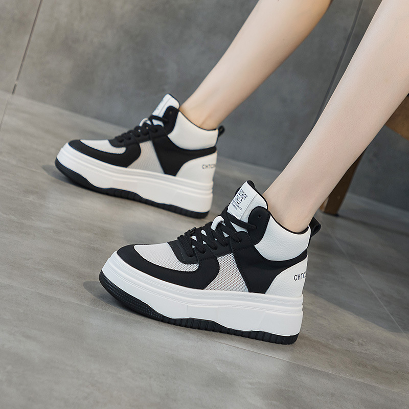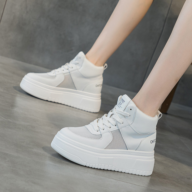 캐주얼 하이탑 화이트 슈즈, 키 작은 분들을 위한 2025 가을 신상 화이트 가을/겨울 모델, 벨벳 안감 두꺼운 밑창 키높이 여성화스토어 가기