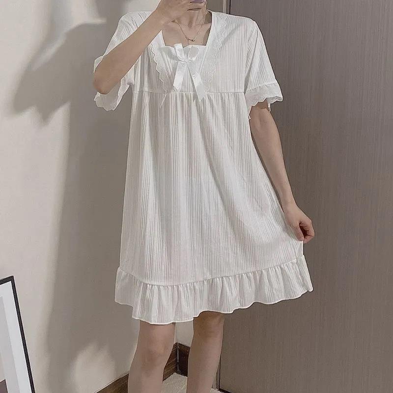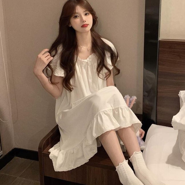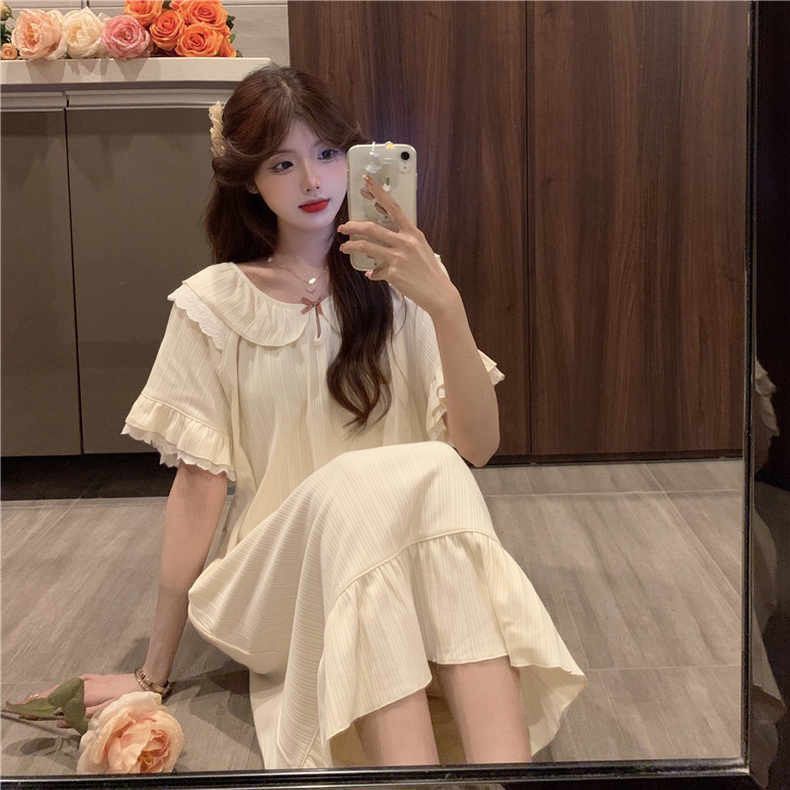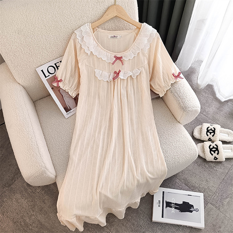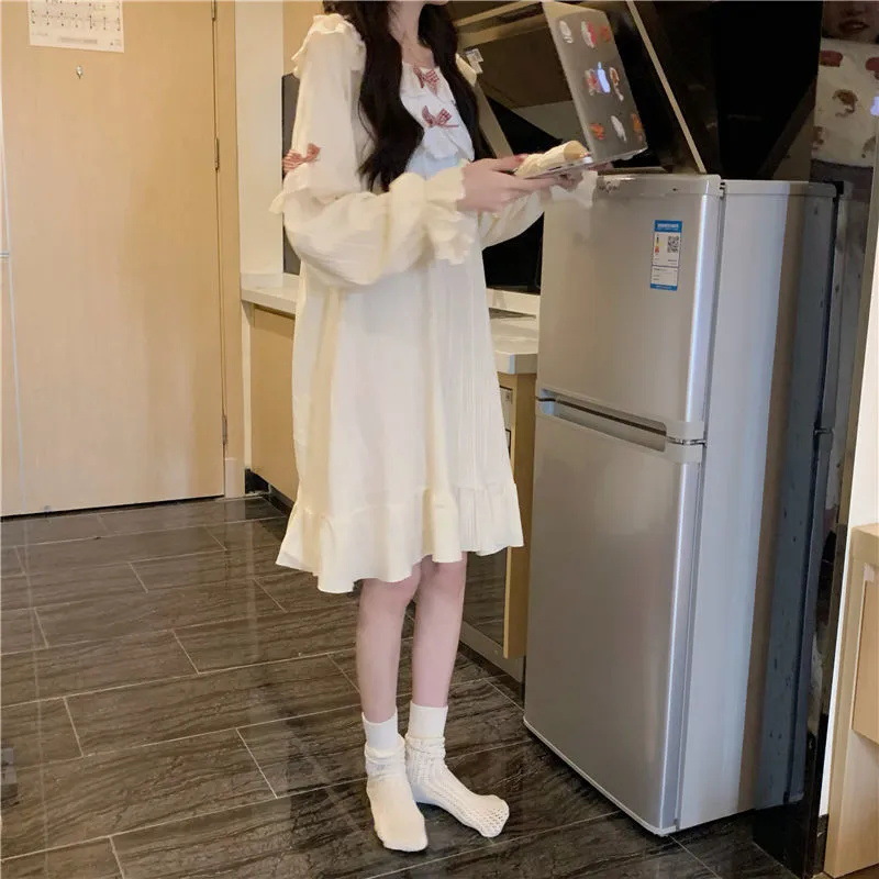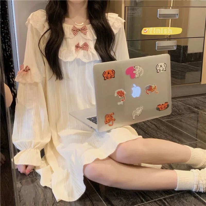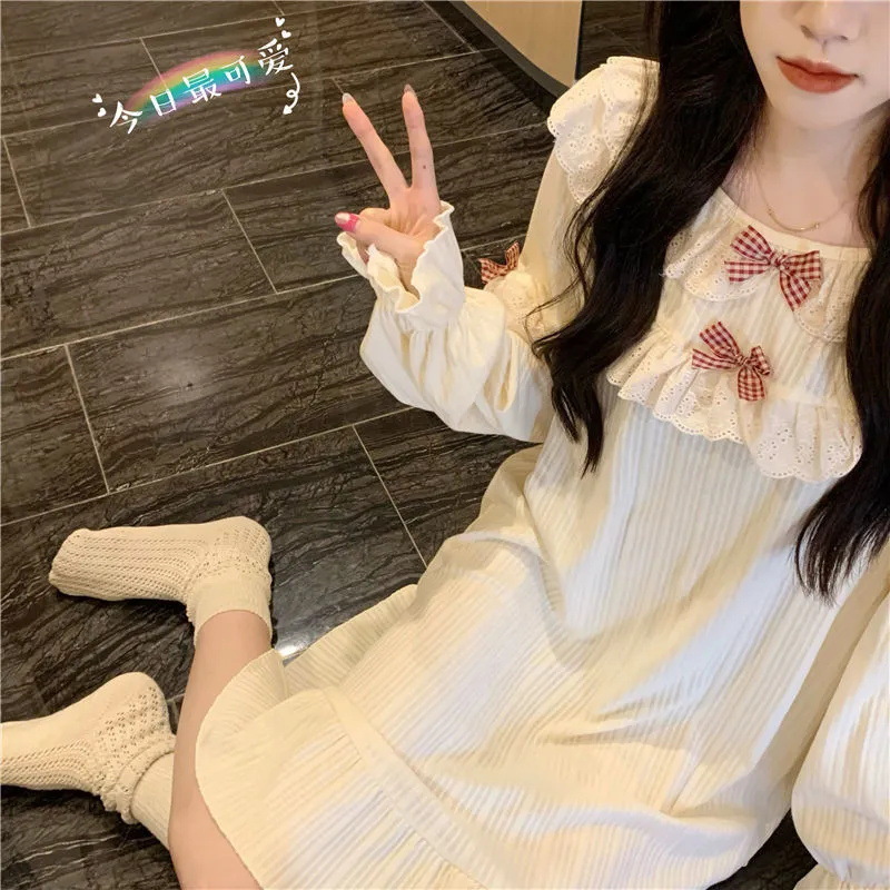 플러스 사이즈 잠옷 여자의 봄과 가을 잠옷 가슴 패드 코트 복고풍 스타일 레이스 긴 원피스 가정 옷 크로스 보더 해외 무역 독점스토어 가기