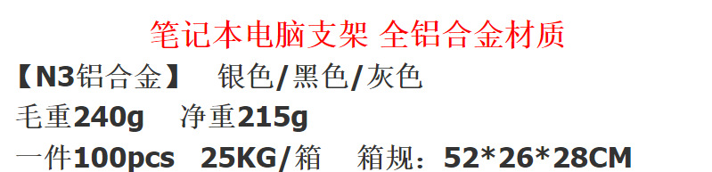 N3 컴퓨터 노트북 스탠드 모든 알루미늄 합금 실리콘 접이식 수직 모든 금속 브래킷 냉각 지원 프레임