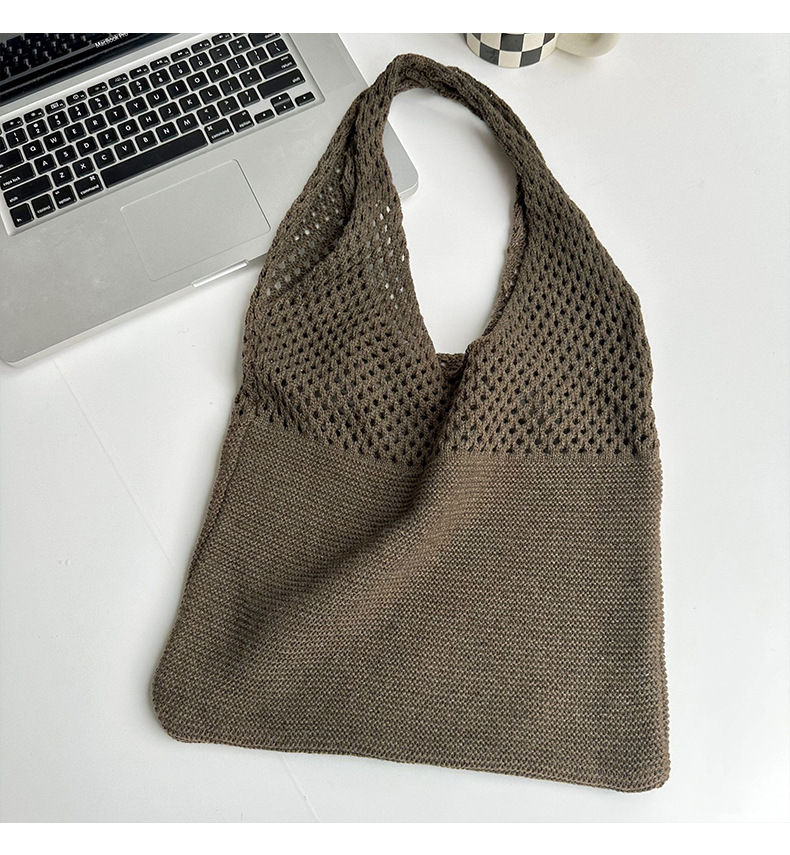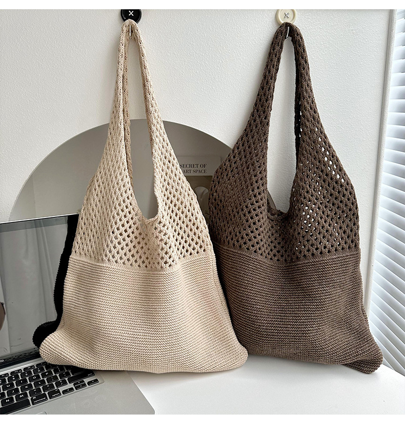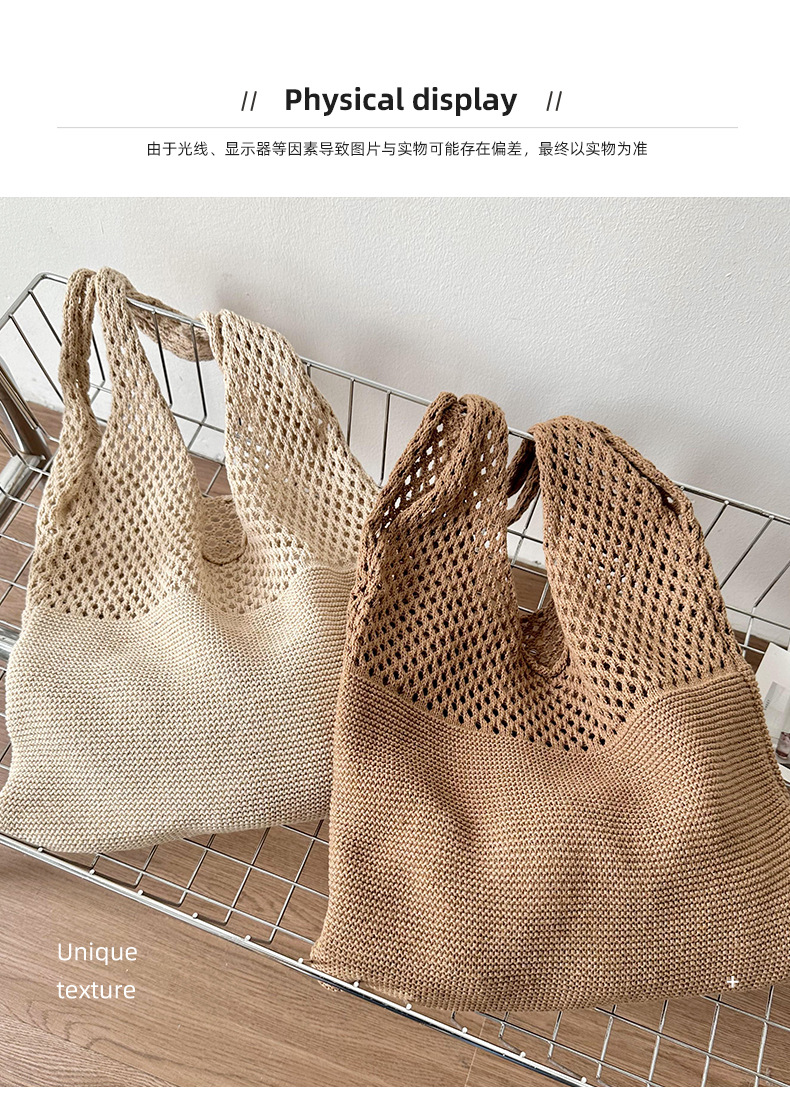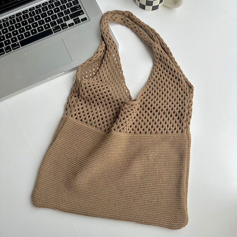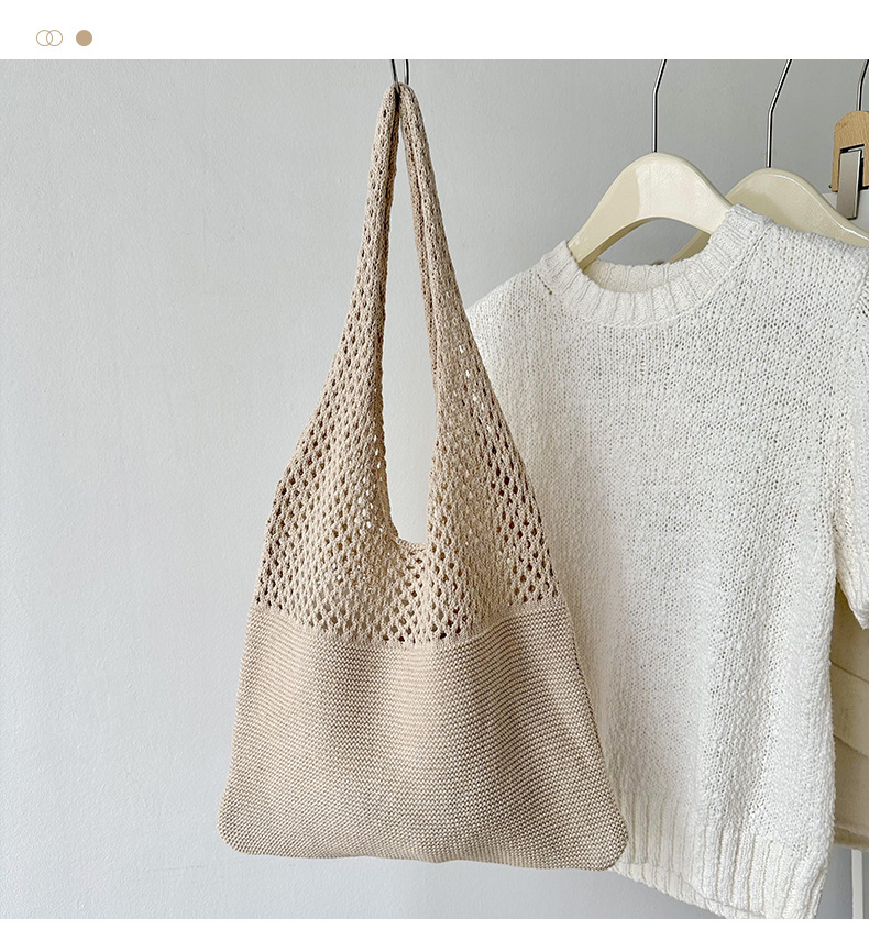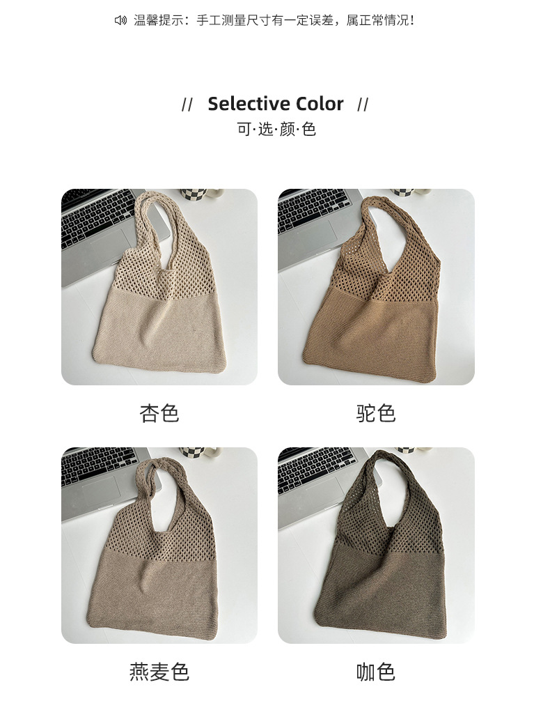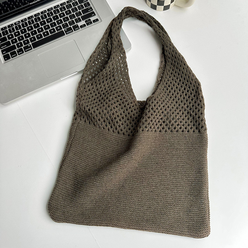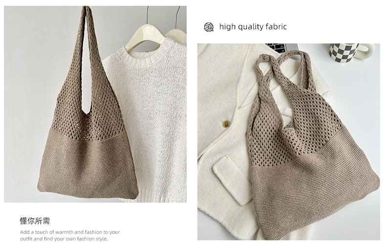 새로운 손으로 짠 단색 중공 니트 울 가방 가을과 겨울 만능 대용량 통근 숄더백 토트백스토어 가기