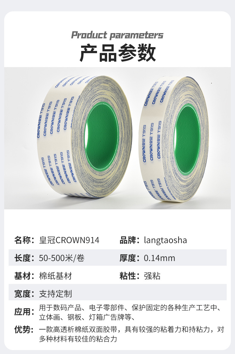 Crown T914 양면 테이프 가죽 금속 고정 테이프 고점도 부직포 초박형 고온 방지 양면 테이프