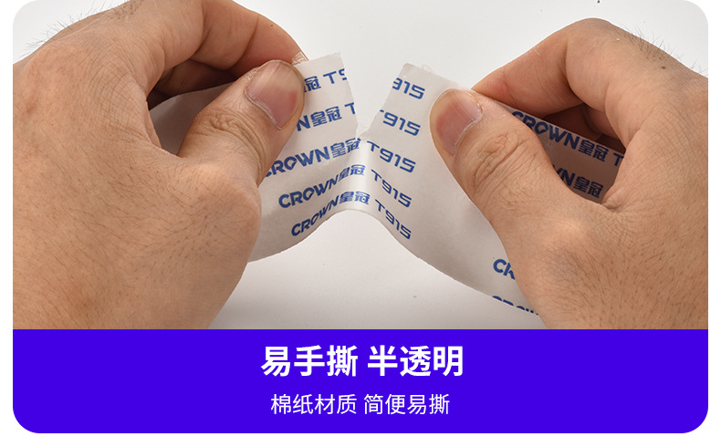 皇冠T914双面胶皮革金属固定胶带 高粘无纺布超薄耐高温双面胶带