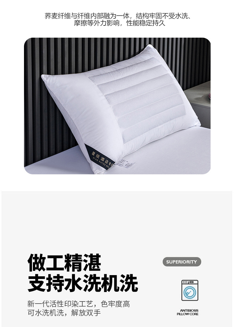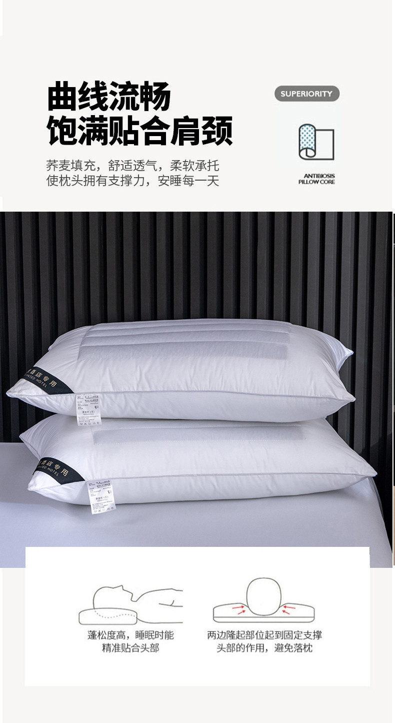 순면 메밀 겸용 베개 호텔용 항진드기 섬유 베개 코어 가정용 학생 기숙사용 싱글 수면 베개 목 보호