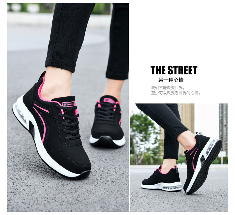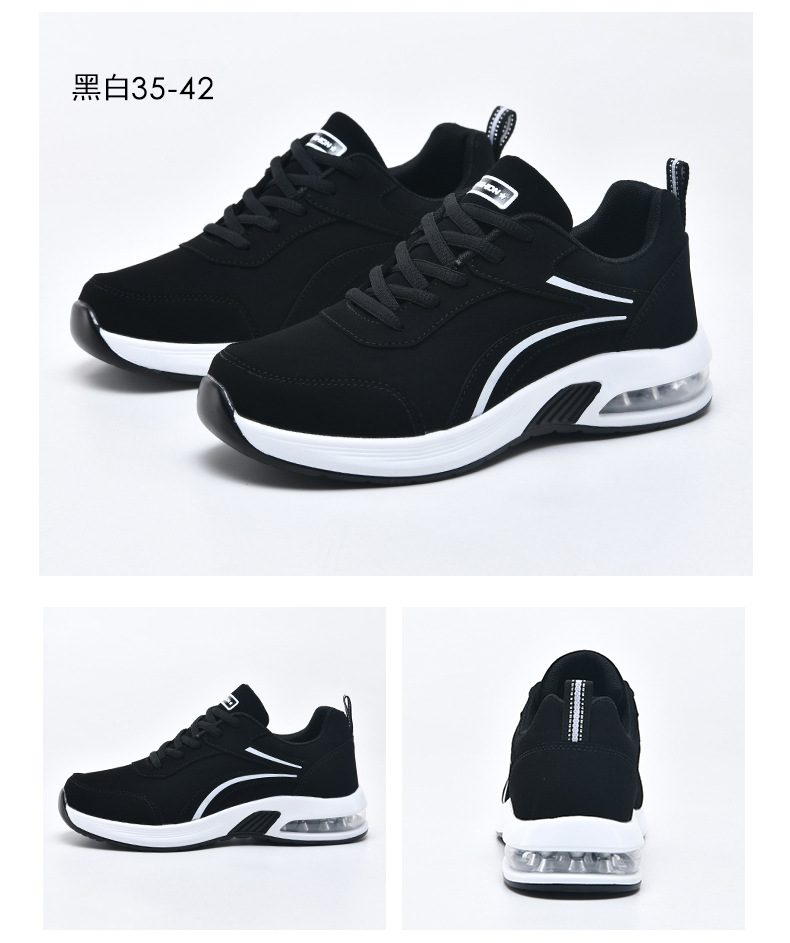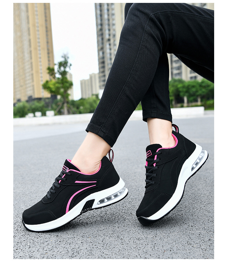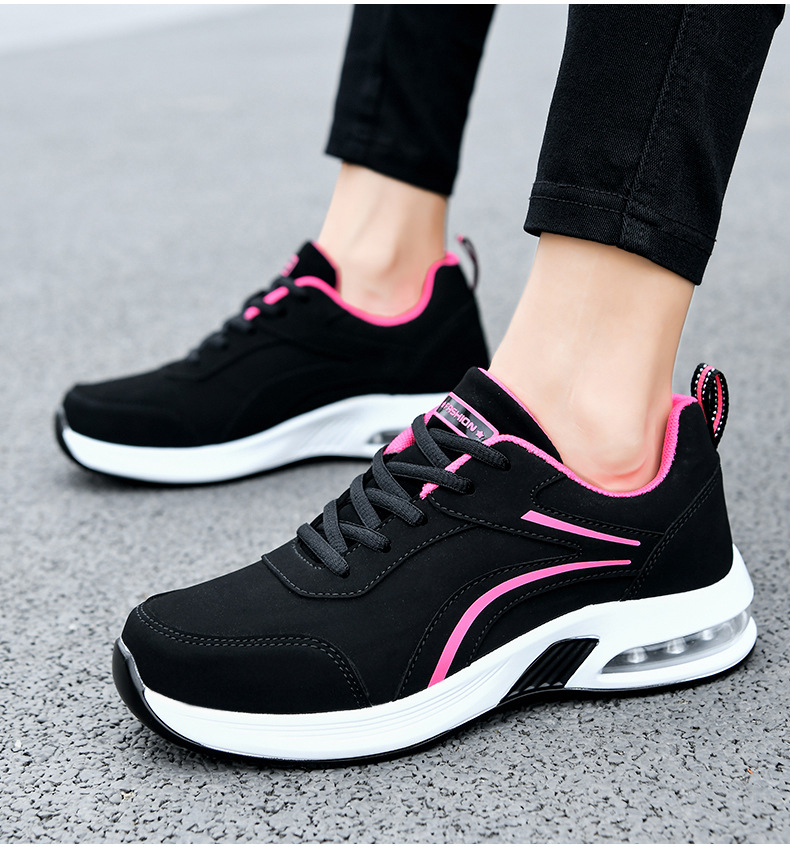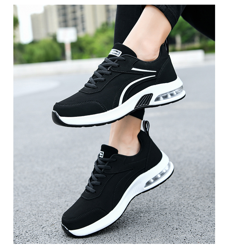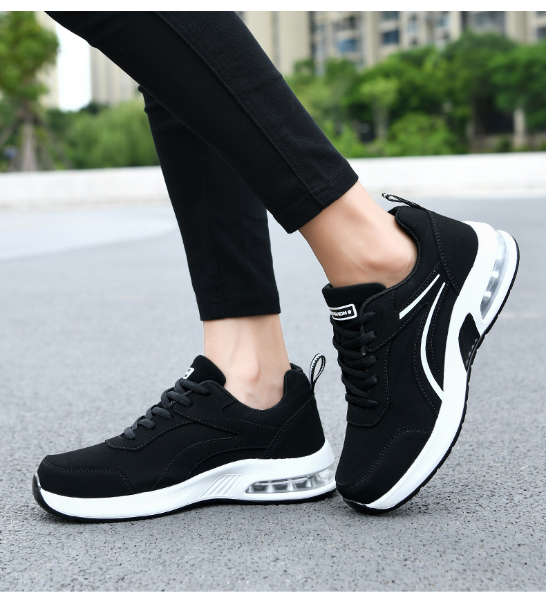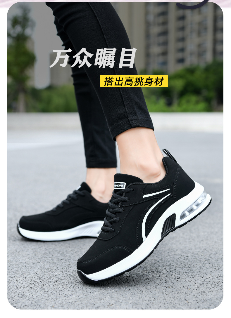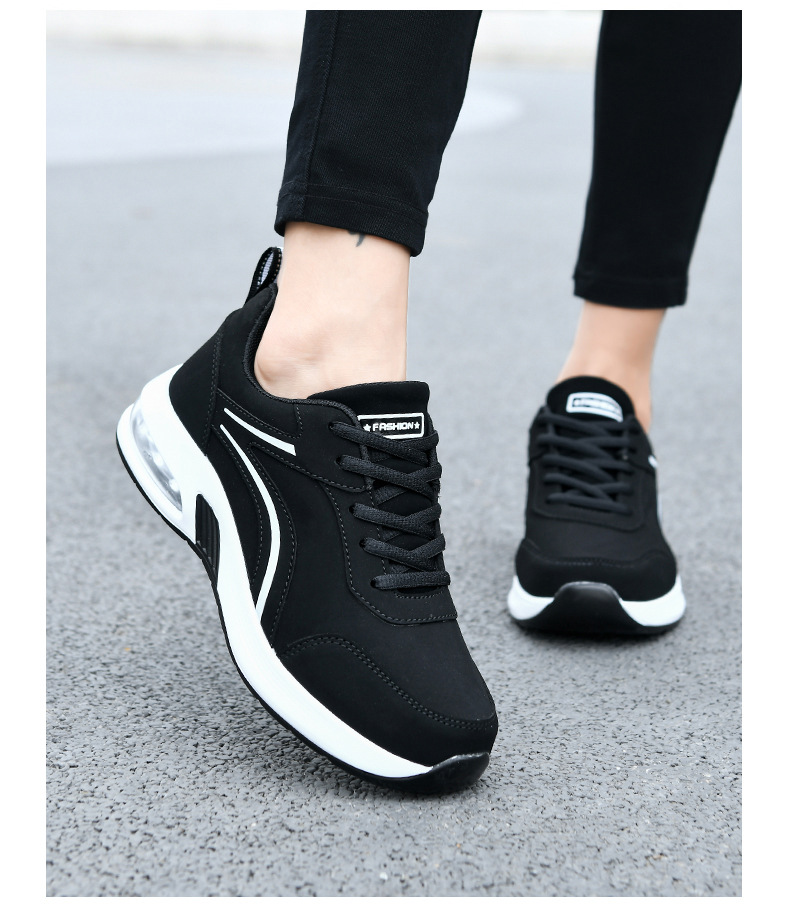 가을 겨울 캐주얼 여성 신발 패션 블랙 가죽 에어쿠션 밑창 운동화 수출용 두꺼운 밑창 크로스보더 플랫힐 트렌디 스타일스토어 가기
