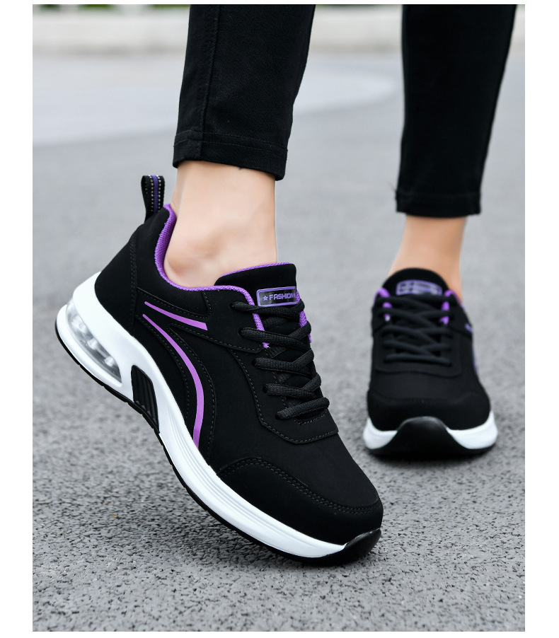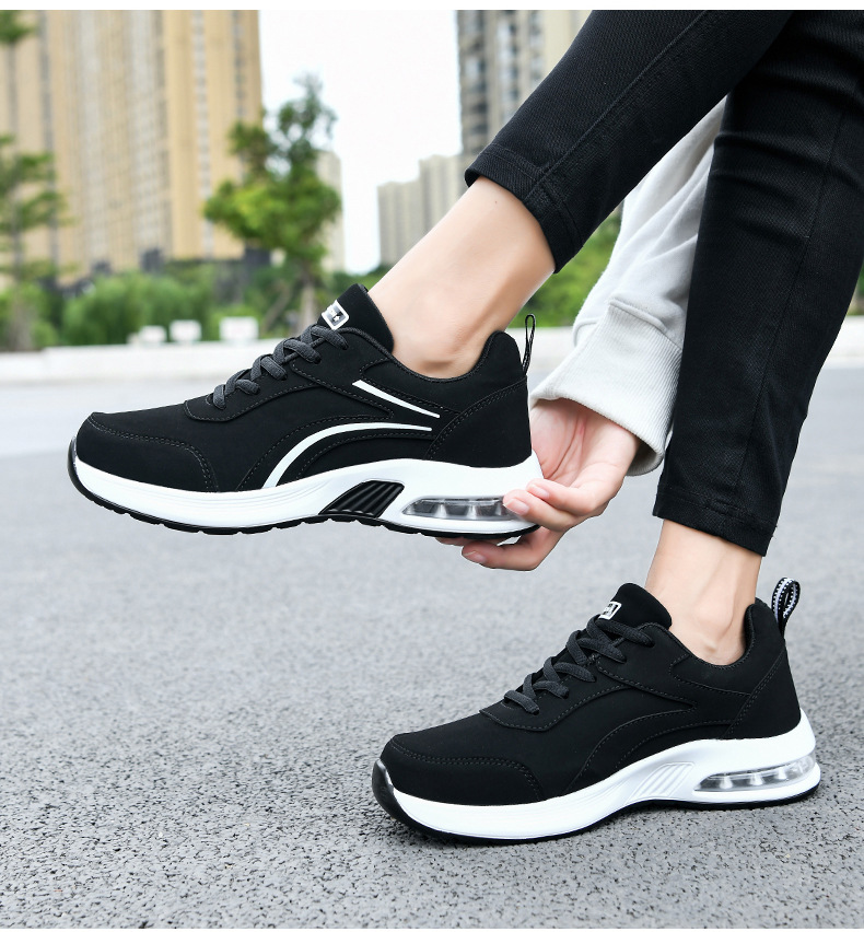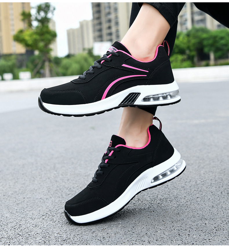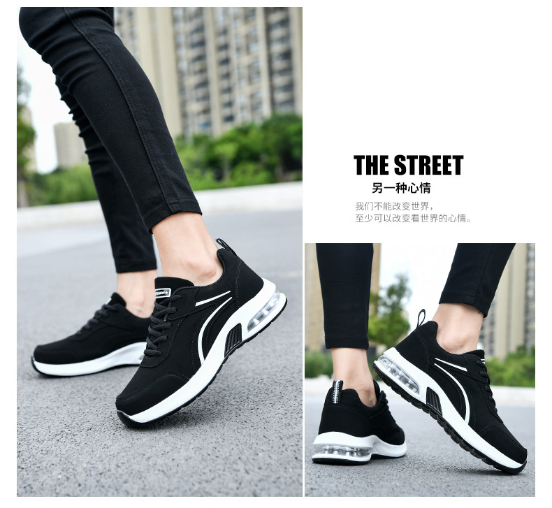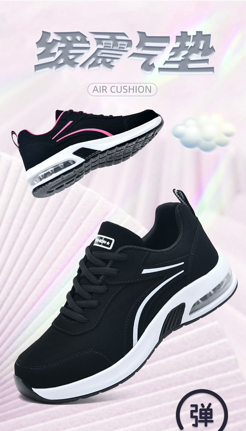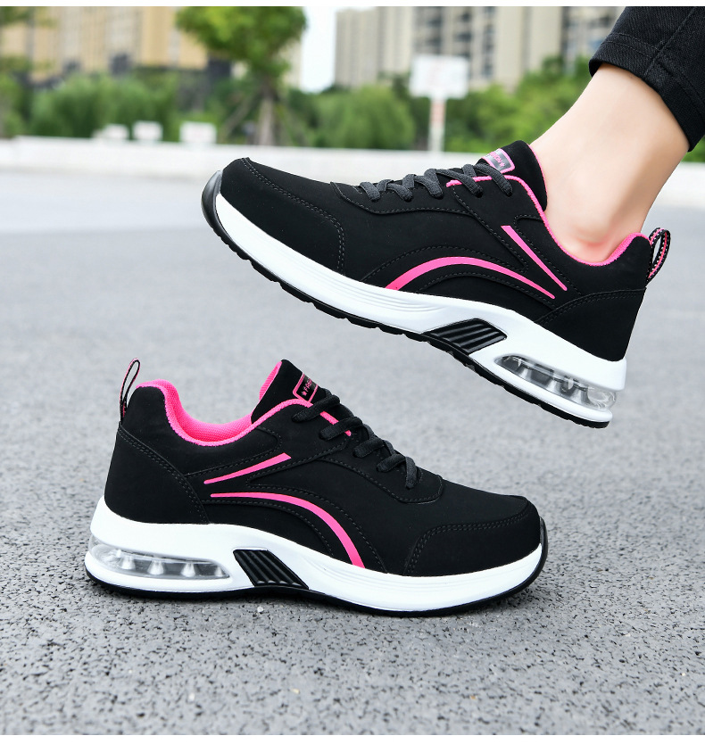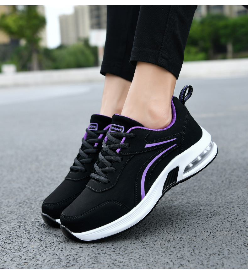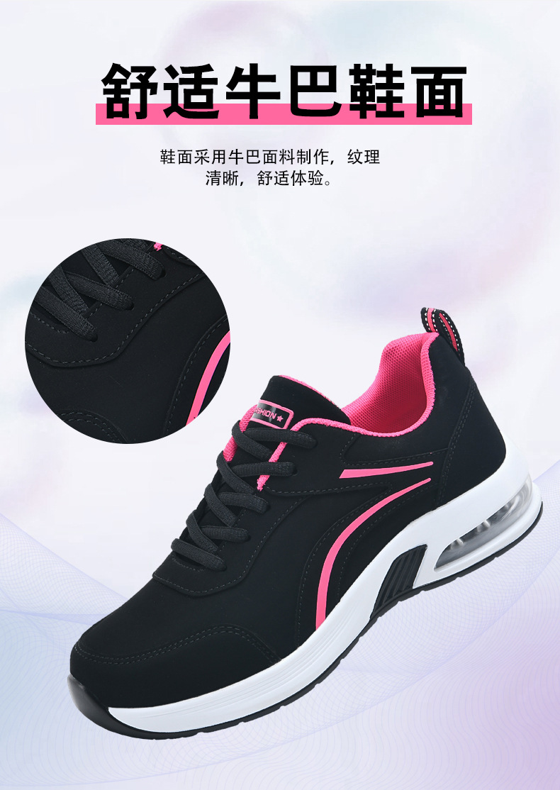 가을 겨울 캐주얼 여성 신발 패션 블랙 가죽 에어쿠션 밑창 운동화 수출용 두꺼운 밑창 크로스보더 플랫힐 트렌디 스타일스토어 가기