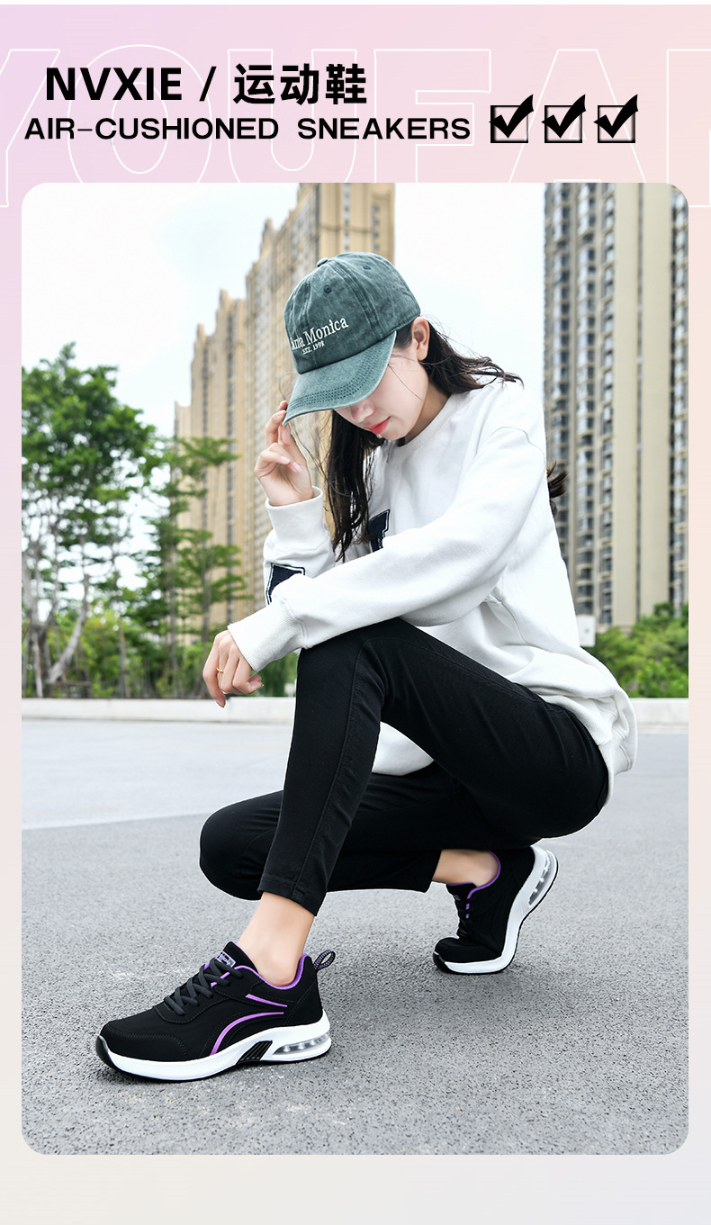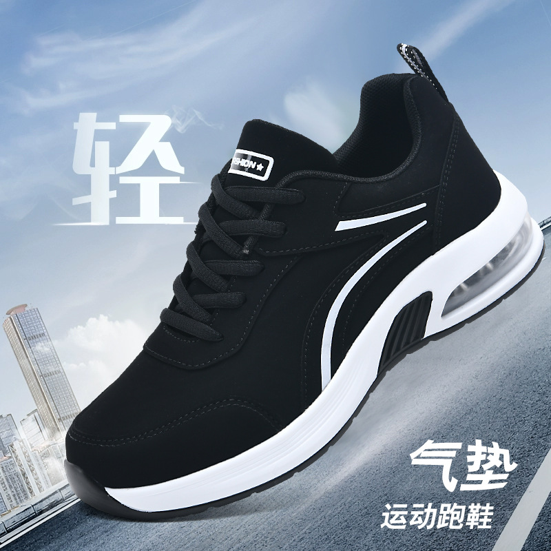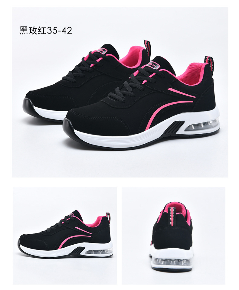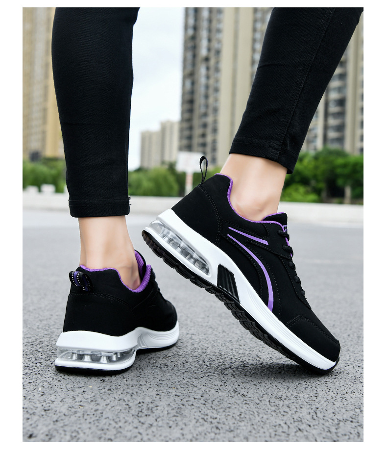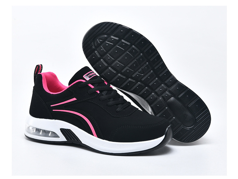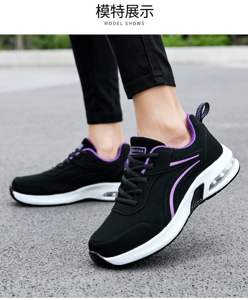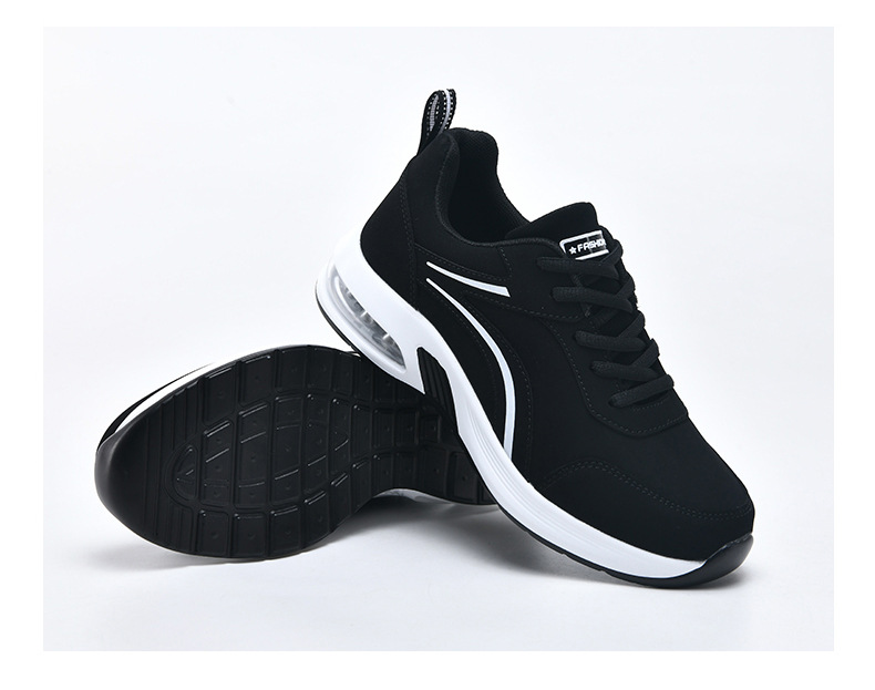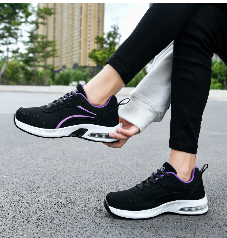 가을 겨울 캐주얼 여성 신발 패션 블랙 가죽 에어쿠션 밑창 운동화 수출용 두꺼운 밑창 크로스보더 플랫힐 트렌디 스타일스토어 가기