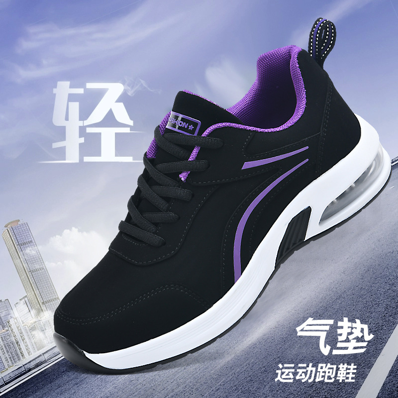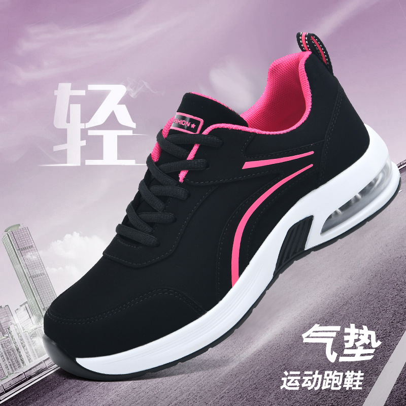 가을 겨울 캐주얼 여성 신발 패션 블랙 가죽 에어쿠션 밑창 운동화 수출용 두꺼운 밑창 크로스보더 플랫힐 트렌디 스타일