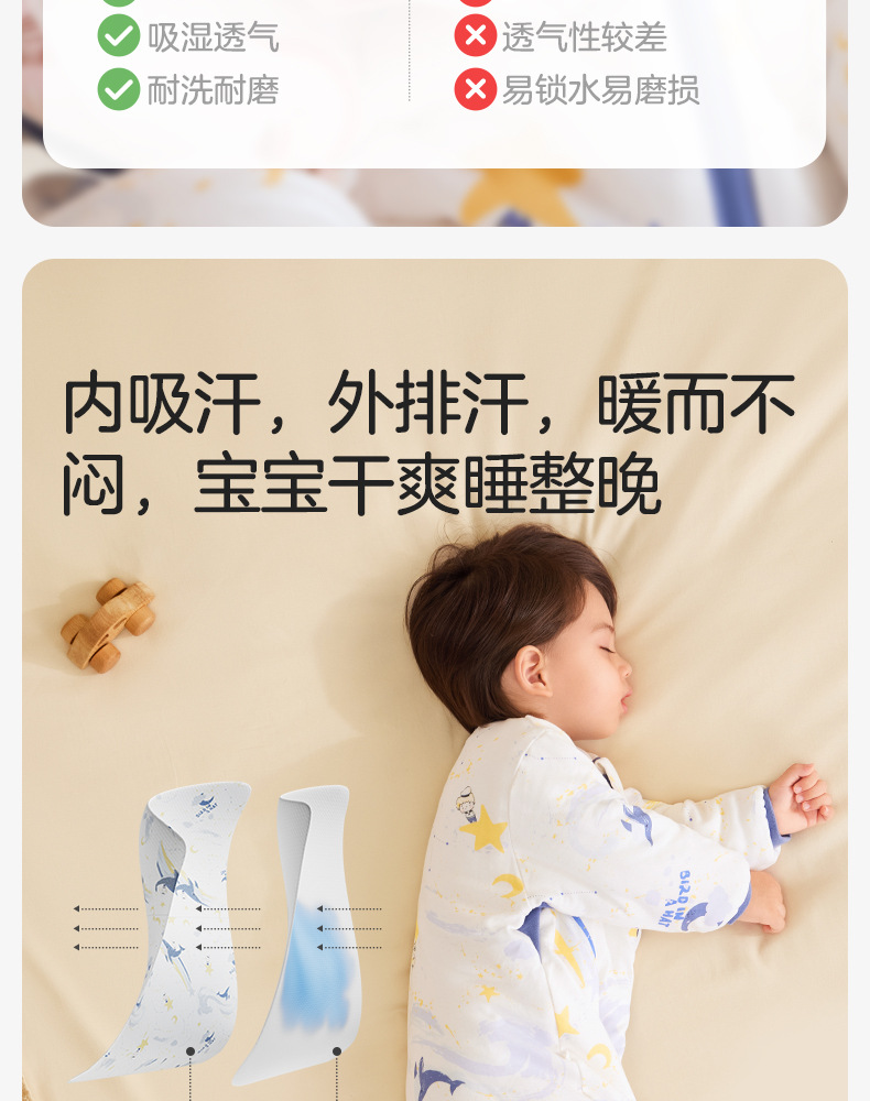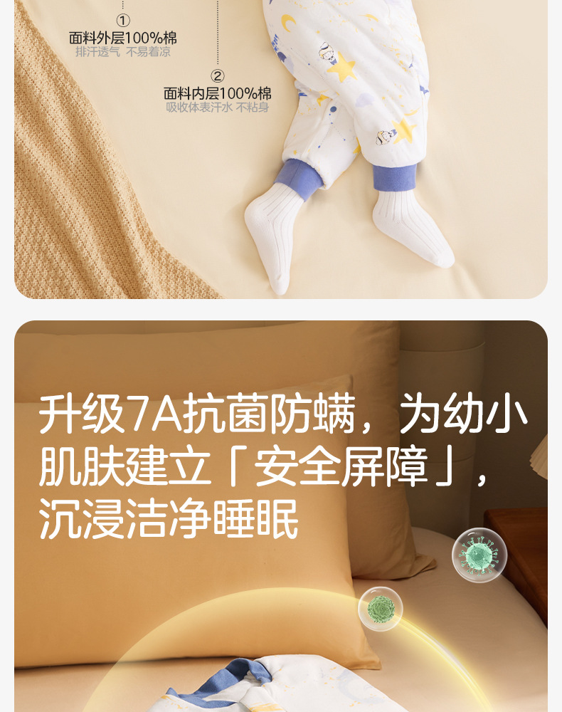 10 월 Jiejing Shanhaijing 아기 침낭 일정 온도 면 가을과 겨울 어린이 킥 방지 이불 사계절 유니버설 레그 베이비